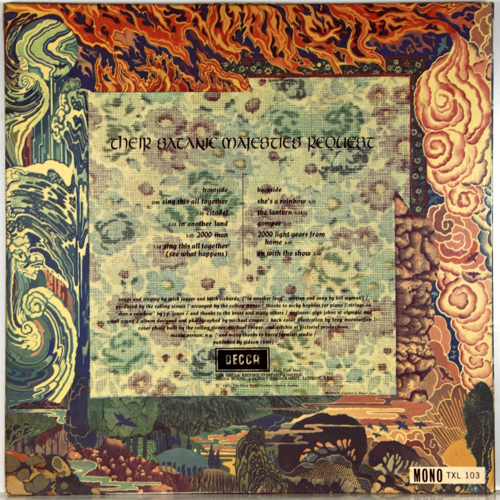 ROLLING STONES-THEIR SATANIC MAJESTIES REQUEST (MONO)-1967-ПЕРВЫЙ ПРЕСС UK-DECCA- номер TXL103 матрицы ARL8126T2-3K/ARL8127T2-3K стампера 1W/1R(очень рано!!!)