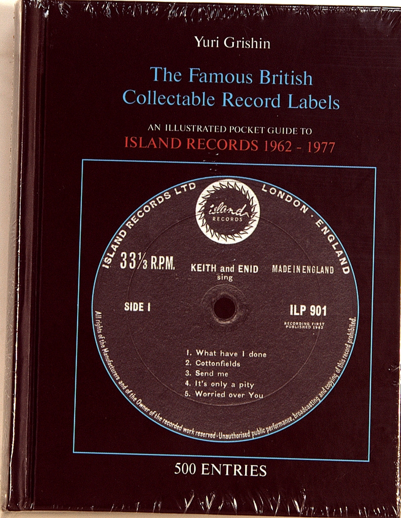 ЮРИЙ ГРИШИН-ISLAND RECORDS 1962-1977 FAMOUS BRITISH COLLECTABLE RECORDS LABELS-2011-RUSSIA-ISBN978-5-9902473-1-4 Справочник по первым изданиям пластинок, выпущенным Island Records с 1962 по 1977. Твёрдая обложка. Содержит более 500 цветных изображений. Язык издания: Русский, Английский. Island Records 1962-1977 — это книга о виниловых пластинках, выпущенных знаменитой звукозаписывающей компанией Island Records в 60-е и 70-е годы прошлого столетия. В этом справочнике представлены исключительно первые издания, а сама книга может быть полезна для оценки стоимости и редкости пластинок на выставках и в магазинах или как познавательное домашнее чтиво. Издание имеет удобный формат, выпущено в твёрдой обложке и содержит более 500 цветных изображений оригинальных лейблов.
