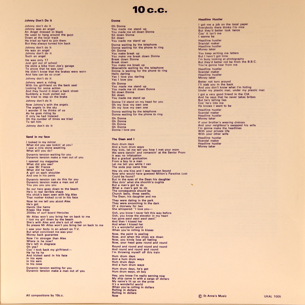10 CC - SAME-1973-ПЕРВЫЙ ПРЕСС UK-UK REC. -UKAL1005 Матрицы A-P1W/B-P1WРедкий британский оригинал первого альбома культовой прог-рок группы. 10cc-дебютный альбом британской рок-группы 10cc . Он был записан в Strawberry Studios в Стокпорте, который был частью собственности гитариста и инженера Эрика Стюарта, и выпущен на лейбле Jonathan King's UK Records [No: UKAL 1005]. Альбом достиг № 36 в Великобритании.