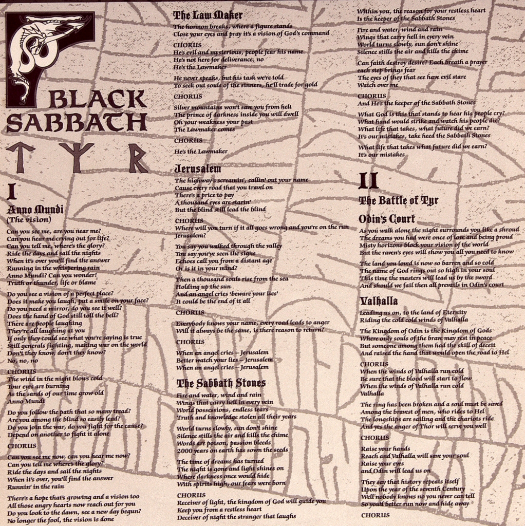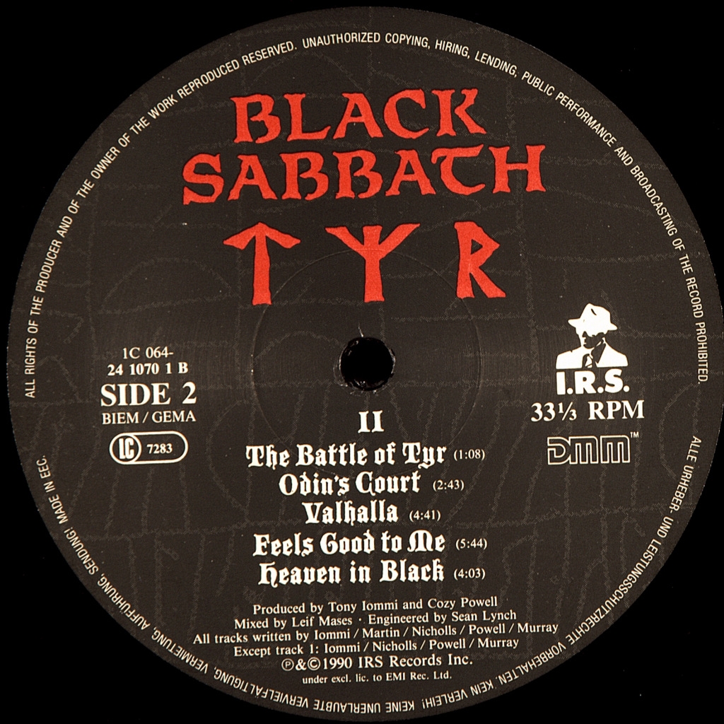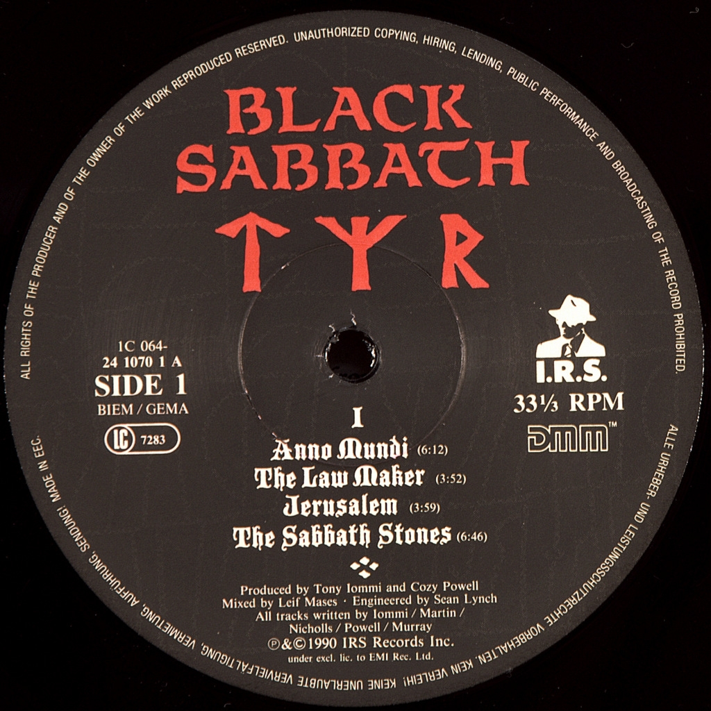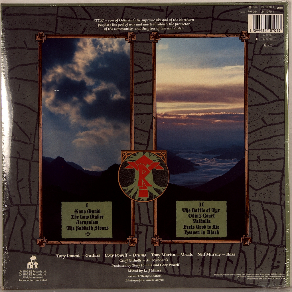 BLACK SABBATH-TYR-1990-ПЕРВЫЙ ПРЕСС EU-GERMANY-I.R.S -064-241070-1. Мега редкий европейский оригинал. Альбом назван по имени бога воинской доблести Тюра из скандинавской мифологии. Композиция «The Battle of Tyr» и песни: «In Odin’s Court», «Valhalla» посвящены скандинавской мифологии и викингам. В поддержку альбома был выпущен сингл и видеоклип с балладой Feels Good to Me, а также проведено концертное турне.