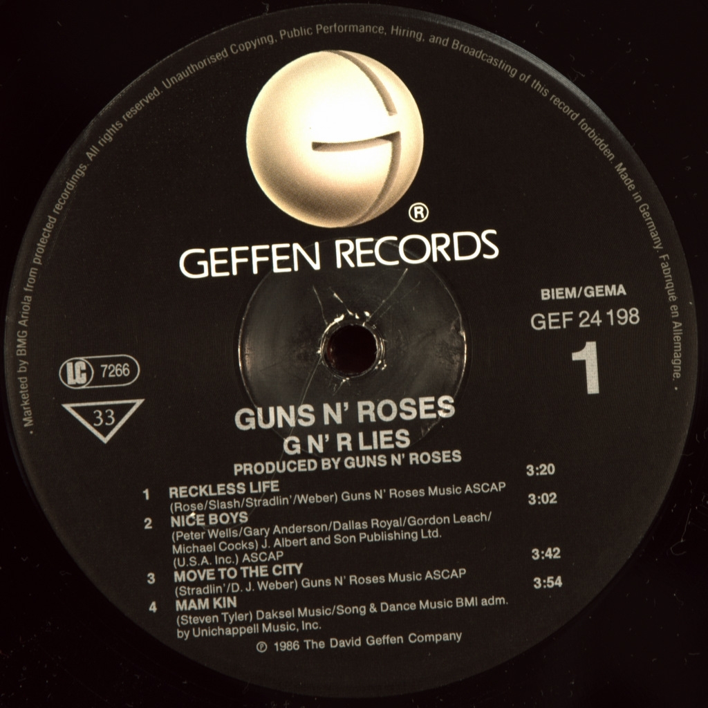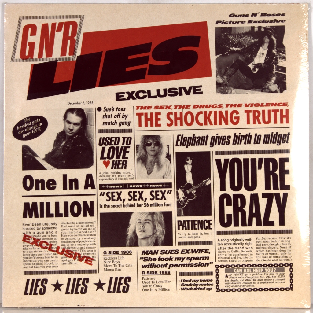 GUNS N' ROSES-G N' R LIES-1988-ПЕРВЫЙ ПРЕСС UK/EU-GERMANY-GEFFEN 24198. Очень редкий клубный оригинал культовой группы. G N’ R Lies (также известный как Lies) — второй студийный альбом группы Guns N’ Roses, вышедший в 1988 году. По данным RIAA, было продано более пяти миллионов копий только в США, став моментально мильтиплатиновым. Первые четыре трека ранее уже выпускались на EP Live ?!*@ Like a Suicide. Четыре последние песни были записаны с использованием акустических гитар. Они были написаны и записаны всего за несколько сессий в студии (за исключением «You’re Crazy», которая была включена в альтернативную версию альбома Appetite for Destruction).В более поздних интервью, Эксл Роуз говорил, что ему нравится как группа звучала на последних четырёх песнях, но он ненавидел звук своего голоса. Роуз вспомнил, что его голос был хриплым и грубым из-за длительных гастролей группы в то время, и если бы он мог, то заново записал бы свои вокальные партии. «You’re Crazy» вышла ранее на дебютном альбоме группы, Appetite for Destruction и в настоящем альбоме записана как первоначально задумана.