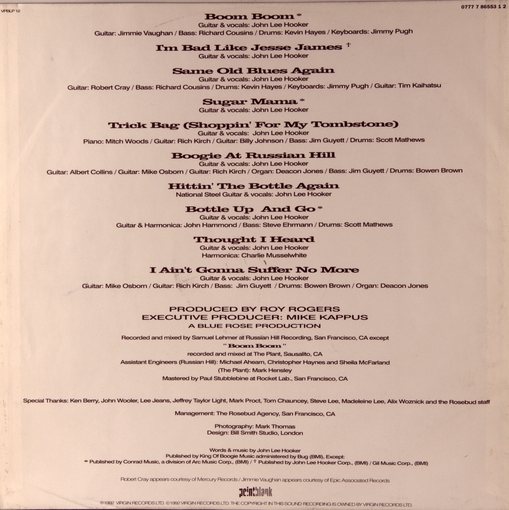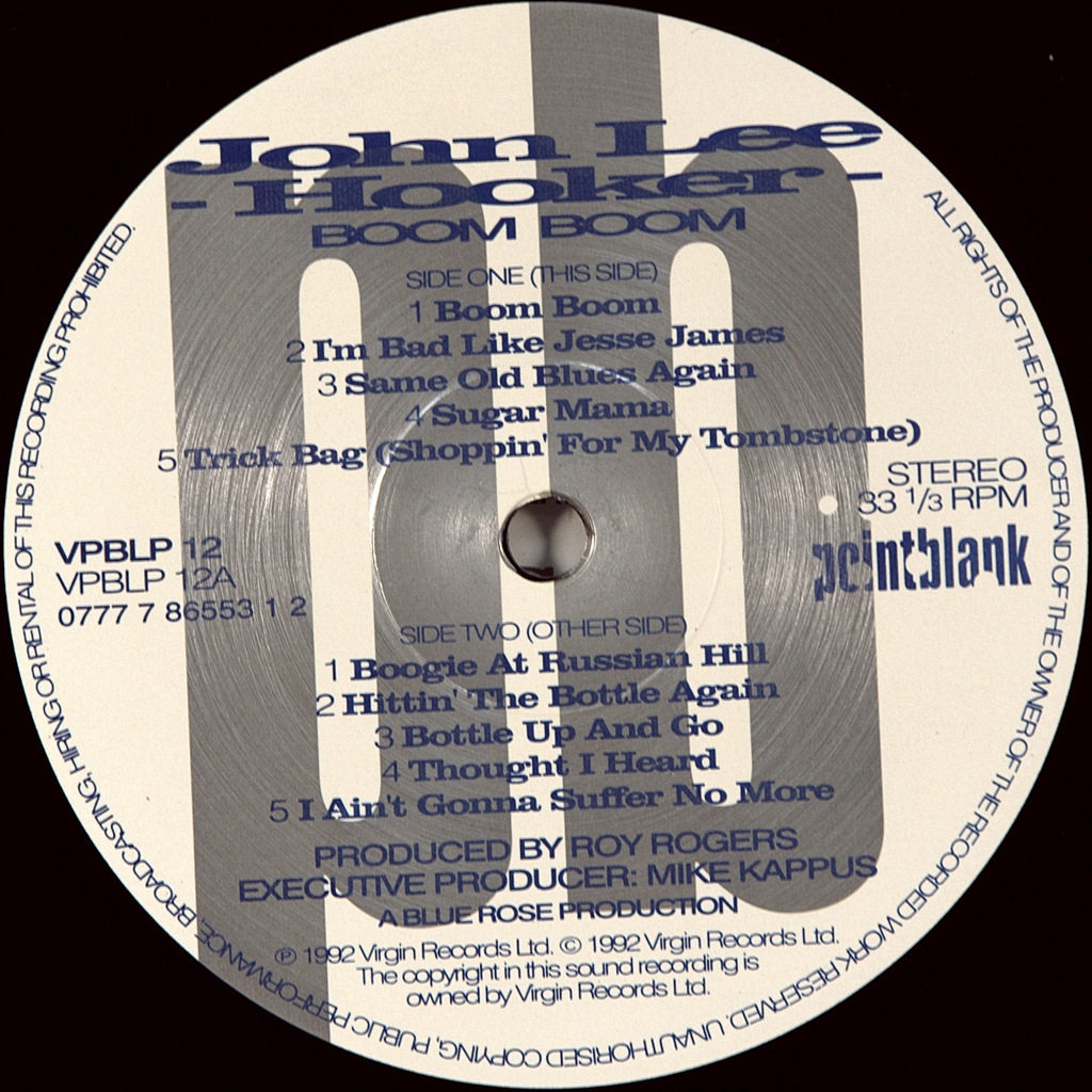 JOHN LEE HOOKER-BOOM BOOM-1992-ПЕРВЫЙ ПРЕСС UK -POINTBLANK-VPBLP-12. Редкий британский оригинал одного из отцов блюза. Boom Boom- альбом 1991 года американского блюзового певца, композитора и гитариста Джона Ли Хукера . Это третий альбом после триумфиального возвращения в 1989 году. На альбоме Хукер перезаписал легендарные хиты 60-х. После выхода альбом в первые две недели попал попал во все чарты по обе стороны атлантики.