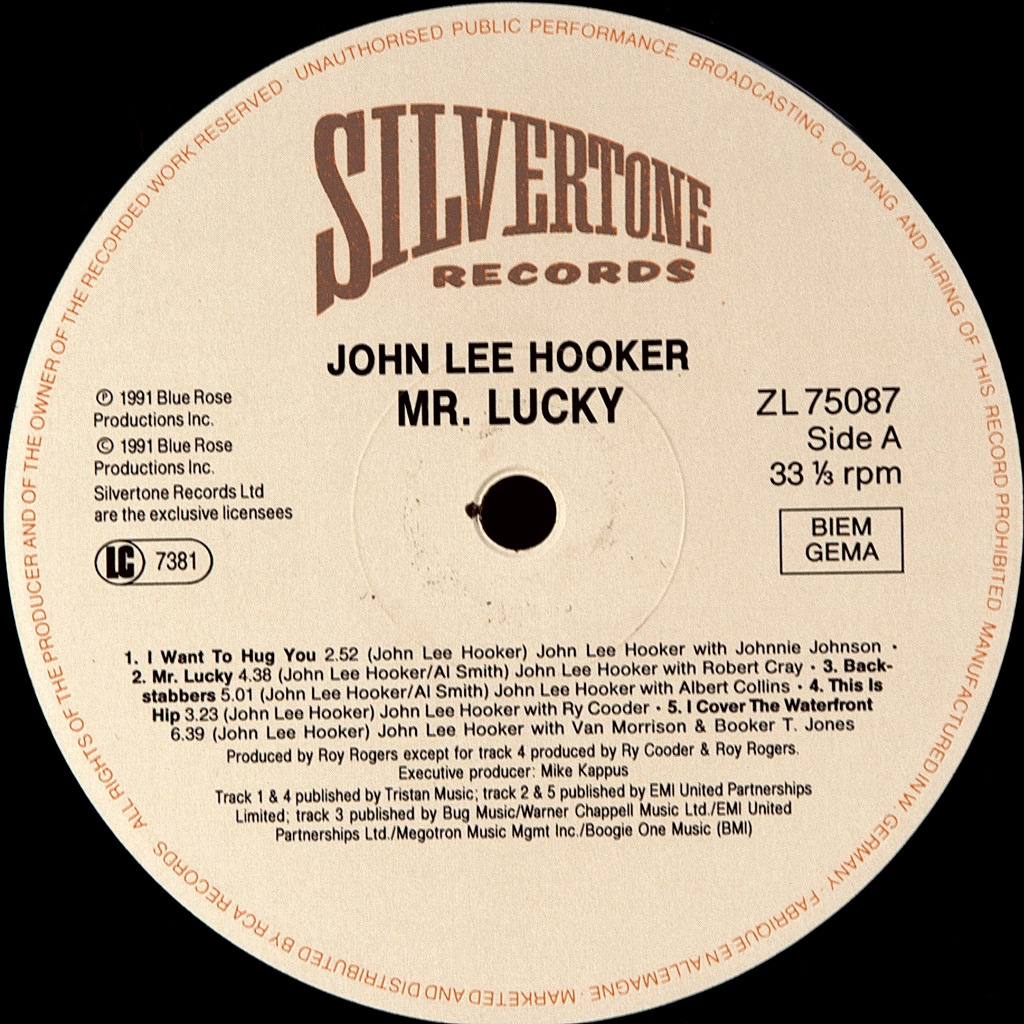 JOHN LEE HOOKER-MR. LUCKY-1991-ПЕРВЫЙ ПРЕСС UK/EU GERMANY -SILVERTONE-ZL75087. Редкий европейский оригинал одного из отцов блюза. Mr Lucky- альбом 1991 года американского блюзового певца, композитора и гитариста Джона Ли Хукера . Спродюсированный Ry Cooder, Roy Rogers и Carlos Santana под исполнительным производством Майка Каппуса, альбом включал музыкантов, включая Кита Ричардса , Зал Славы Блюза новичка Джонни Уинтера ; и три новичка Зала славы рок-н-ролла , Ван Моррисон, Букер Т. Джонс и Джонни Джонсон . Выпущенный на Virgin Records, в том числе на его этикетке отпечатка Classic Records, г-н Лаки достиг № 101 на " Billboard 200 ".