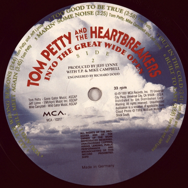 PETTY, TOM-INTO THE GREAT WIDE OPEN-1991-Первый пресс UK/EU GERMANY-MCA-номер MCA 10317. Into the Great Wide Open — восьмой студийный альбом рок-группы Tom Petty and the Heartbreakers, изданный в 1991 году. Как и сольный альбом Петти Full Moon Fever, Into the Great Wide Open спродюсировал коллега музыканта по Traveling Wilburys Джефф Линн. Альбом стал довольно успешным, получив статус золотого в Германии и Швейцарии, платинового в Великобритании и Швеции и 2×мульти-платинового в Канаде и США. Песни «Out In The Cold», «Learning To Fly», «King s Highway» и «Into The Great Wide Open» заняли лидирующие позиции в чарте Mainstream Rock. В музыкальном видео на последнюю снялся Джонни Депп, у которого выдалось свободное время на съёмочной площадке фильма «Аризонская мечта» Эмира Кустурицы.