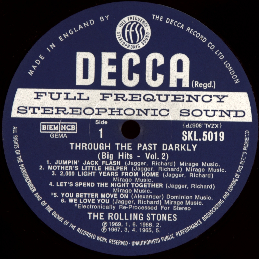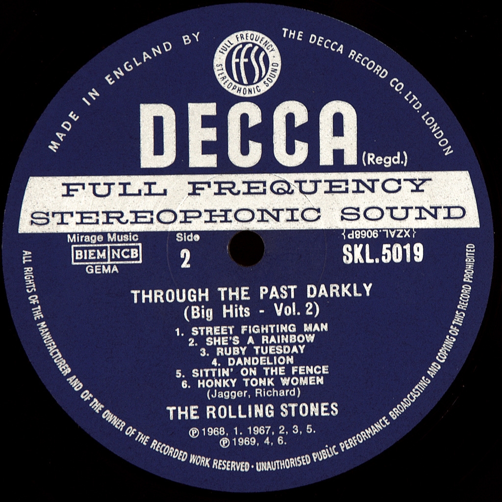 ROLLING STONES-BIG HITS vol.2 (THROUGH THE PAST, DARKLY)-1969-ПЕРВЫЙ ПРЕСС UK-DECCA-SKL5019. Матрицы XZAL-9067.P-1W, XZAL-9068.P-2W. Редкий стерео британский оригинал культового альбома ROLLING STONES.