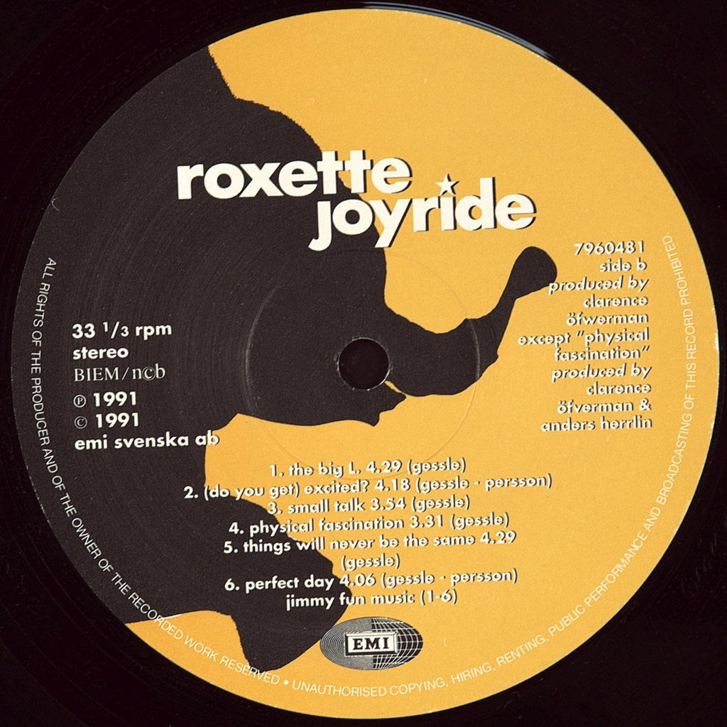 ROXETTE-JOYRIDE-1991-ПЕРВЫЙ ПРЕСС SWEDEN-EMI номер 7960481. Редкий шведский оригинал. Joyride-третий студийный альбом шведского поп-рок дуэта Roxette. Название диска Per Gessle взял из интервью Paul McCartney, когда тот заявил, что «процесс написания песен с John Lennon был похож на Joyride».