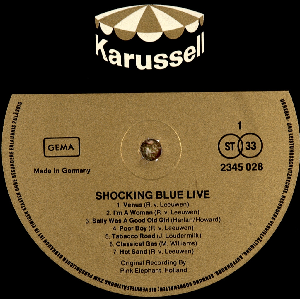 SHOCKING BLUE-LIVE-1971-ПЕРВЫЙ ПРЕСС GERMANY-KARUSSELL номер 2345028. Очень редкий оригинал живого альбома голландской супер группы, выпущенного с альтернативной обложкой в Германии.