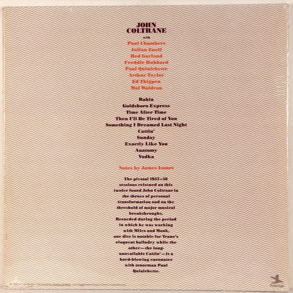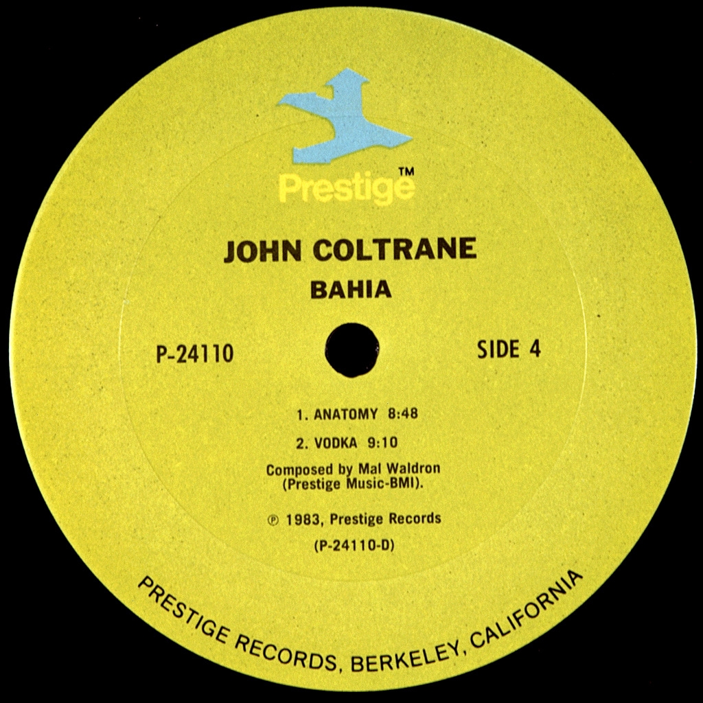 COLTRANE, JOHN -BAHIA (2LP'S)-1983-ПЕРВЫЙ ПРЕСС (STEREO) USA- PRESTIGE-P-24110 Редкий американский оригинал ремастированного в стерео сборника с трех ранних моно альбомов. . A1, A2 и B2 были реализованы в альбоме "Bahia" (Prestige 7253); A3 и B1 в альбоме "Stardust" (Prestige 7268). сторона 3 и 4 были оригинально изданы на альбоме "Cattin' with Coltrane and Quinichette" (Prestige 7158)