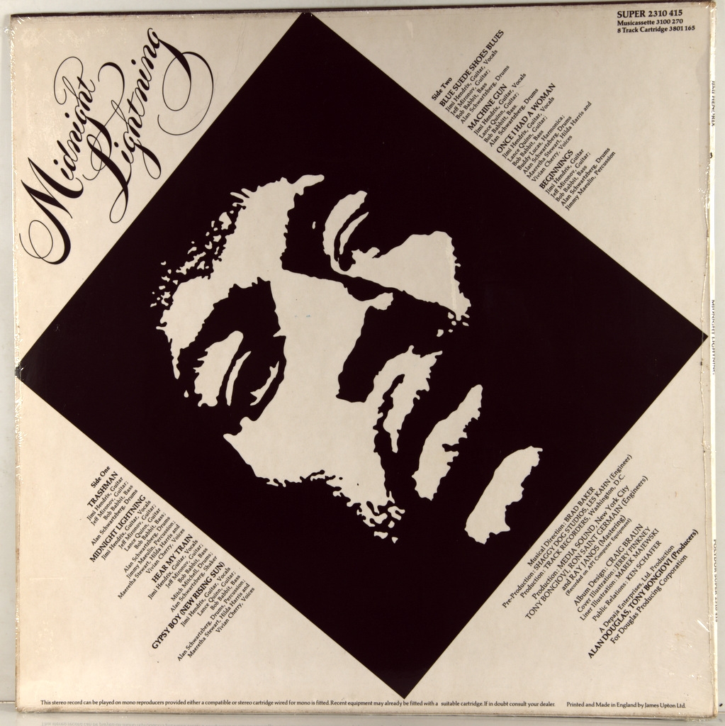 HENDRIX, JIMI-MIDNIGHT LIGHTNING-1975-ПЕРВЫЙ ПРЕСС UK - POLYDOR-2310415. Очень редкий британский оригинал . Midnight Lightning — посмертный девятый студийный альбом американского гитариста Джими Хендрикса, выпущенный в ноябре 1975 года. Альбом достиг 43 места в США, и 46 в Британии. Midnight Lightning шестой студийный альбом Хендрикса, который был выпущен после смерти великого музыканта и второй альбом Алана Дугласа. Песни вошедшие в альбом были написаны Джими Хендриксом после распада группы «Jimi Hendrix Experience».