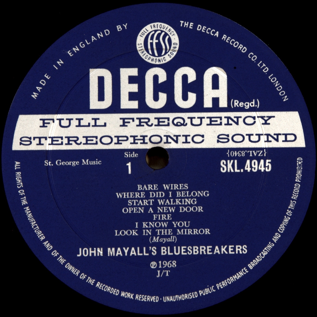 MAYALL'S JOHN BLUES BREAKERS-BAREWIRES-1968-ПЕРВЫЙ ПРЕСС UK-DECCA-SKL4945. Матрицы A-1W/B-1W. Очень редкий стерео оригинал британских блюзовых монстров. John Mayall & the Bluesbreakers были английской блюзовой рок- группой, возглавляемой певцом, композитором и мультиинструменталистом John Mayall, Самое большое наследие Bluesbreakers - это инкубатор для британских рок-музыкантов и блюзовых музыкантов. У многих из самых известных групп, появившихся в Великобритании в 1960-х и 1970-х годах, были участники, которые когда-то проходили через Bluesbreakers, формируя основу британской блюзовой музыки, Среди тех, кто работал в Bluesbreaker, Eric Clapton и Jack Bruce (Cream), Peter Green, Mick Fleetwood, and John McVie (Fleetwood Mac), Mick Taylor ( Rolling Stones), Aynsley Dunbar (Frank Zappa and The Mothers of Invention) и многие другие музыканты. Bare Wires являются студийным альбомом от Bluesbreakers Джона Mayall в , на обложке Mick Taylor на гитаре, выпущенный в 1968 году на Decca Records Альбом был последним студийным альбомом John Mayall & the Bluesbreakers . Альбом также ,был первым успешным американским альбомом Mayall, достигшим № 59 на Billboard 200 ..