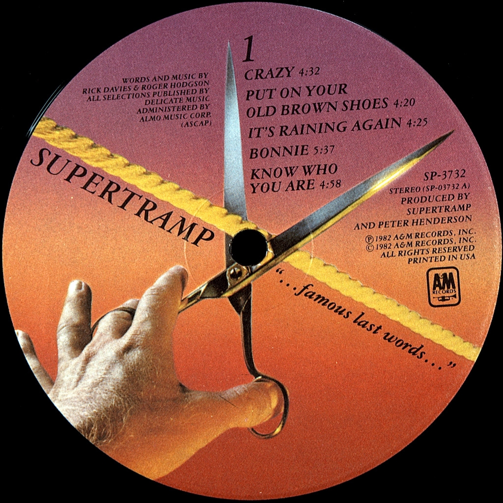 SUPERTRAMP-FAMOUS LAST WORDS-1982-ПЕРВЫЙ ПРЕСС USA-AM-SP3732. Редкий американский оригинал культовой группы.... Famous Last Words... - седьмой альбом английской рок-группы Supertramp, выпущенный в октябре 1982 года . Это было студийное продолжение "завтрака в Америке" 1979 года и последнего альбома с вокалистом/клавишником/гитаристом Роджером Ходжсоном , который покинул группу, чтобы продолжить сольную карьеру. Альбом занял 5 - е место в чартах Billboard Pop Albums в 1982 году и получил золото, продано более 500 000 копий. Он также достиг пика на 6-м месте в Великобритании, где он был сертифицирован золотом за 100 000 проданных копий.
