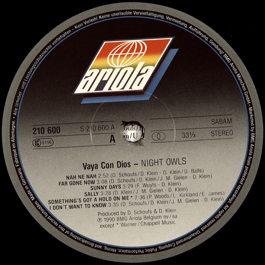 VAYA CON DIOS-NIGHT OWLS-1990-ПЕРВЫЙ ПРЕСС UK/EU-BMG-210600. Редкий оригинал популярной рок группы. Night Owls - второй студийный альбом бельгийской блюз-роковой группы Vaya Con Dios, выпущенный на лейбле Ariola Records в 1990 году.
