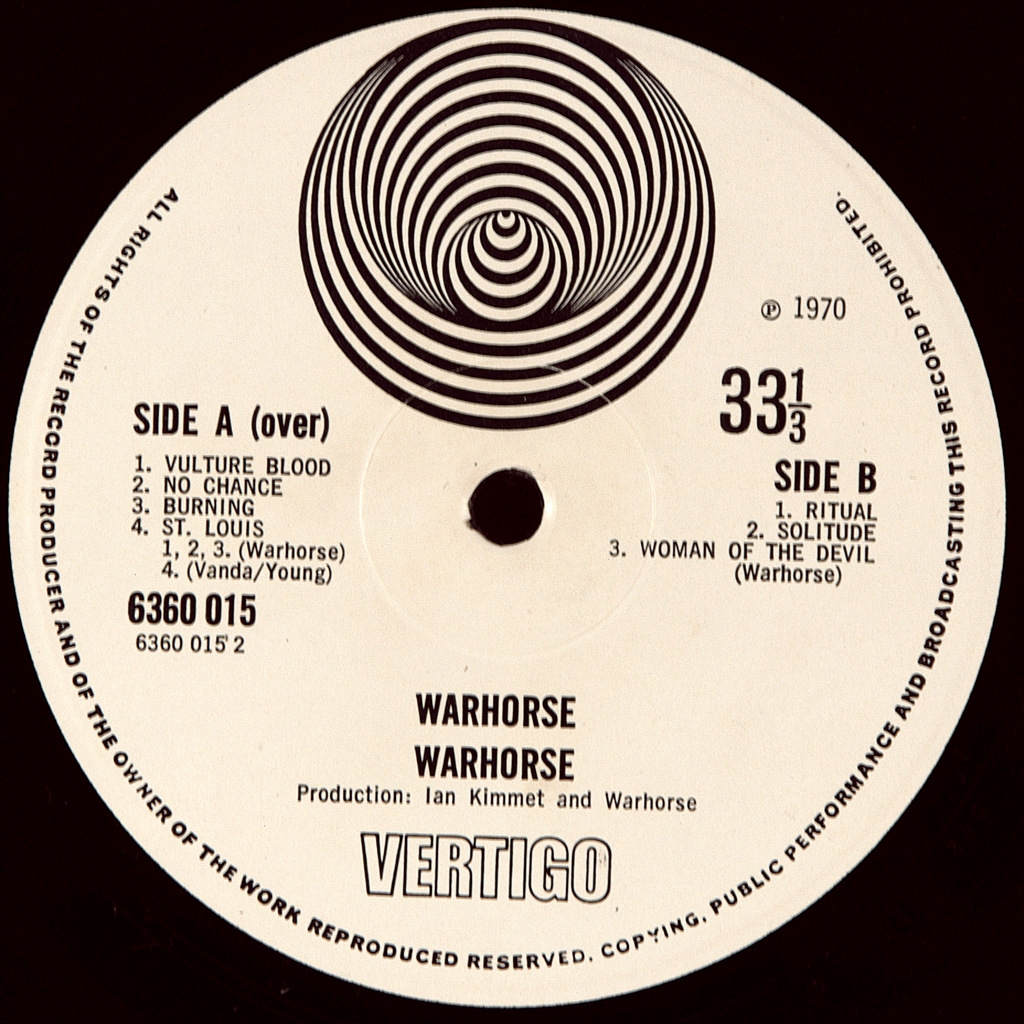 WARHORSE-WARHORSE-1970-ПЕРВЫЙ ПРЕСС UK-VERTIGO SWIRL-6360015. Мега редкий оригинал первого альбома культовой британской прог группы. Warhorse — группа, созданная экс-басистом Deep Purple Ником Симпером. Группа существовала с 1970-го по 1974 год (частичные воссоединения в 1985, 2005). Звучание группы было близко к стилю ранних Deep Purple. После вынужденного ухода из Deep Purple Ник Симпер занялся организацией новой группы. Первоначально он планировал привлечь к сотрудничеству известных в то время музыкантов Альберта Ли и Мика Андервуда, но этот альянс не состоялся. Основу новой группы составили гитарист Джед Пэк и барабанщик Мак Пул — музыканты, игравшие вместе с Симпером в сопровождающем составе Марши Хант. В состав новой группы вошли также вокалист Эшли Холт и клавишник Рик Уэйкман. Группа получила название «Iron Horse», которое вскоре было изменено на «Warhorse». Уэйкман оказался ненадёжным партнёром и в апреле, ещё до того, как группа успела сделать какую-либо запись, покинул группу. Вместо него в группу был взят клавишник Фрэнк Уилсон, с участием которого была сделана дебютная демозапись «Miss Jane». В 1970 году группа заключает контракт с «Phonograms», подразделением «Vertigo Records» и приступает к записи дебютного альбома. Альбом Warhorse вышел в ноябре 1970. Композиция «St. Louis» (кавер «Easybeats») была издана синглом и пользовалась наибольшей популярностью у публики. Сам альбом тоже имел успех, но большей частью в континентальной Европе, в частности, в Германии. Следующие полтора года группа активно гастролировала.