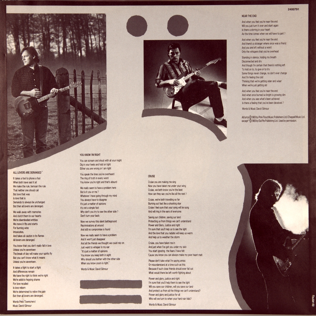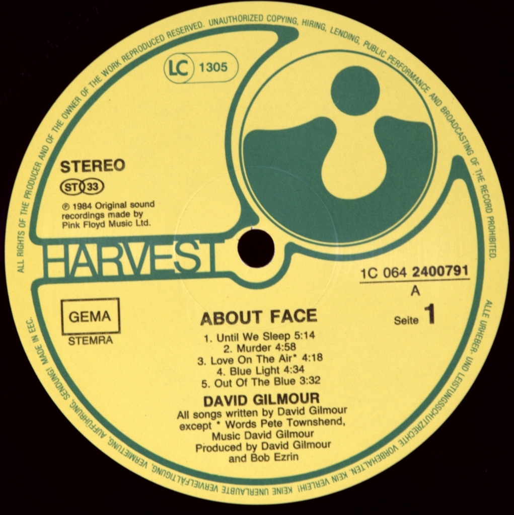 GILMOUR, DAVID-ABOUT FACE-1984-ПЕРВЫЙ ПРЕСС GERMANY-HARVEST-1C064-2400791. Редкий германский в архивном состоянии. Альбом достиг 21-й позиции в США и 32-й в Великобритании. 19 апреля 1995 года Американская ассоциация звукозаписывающих компаний присвоила альбому золотой статус.