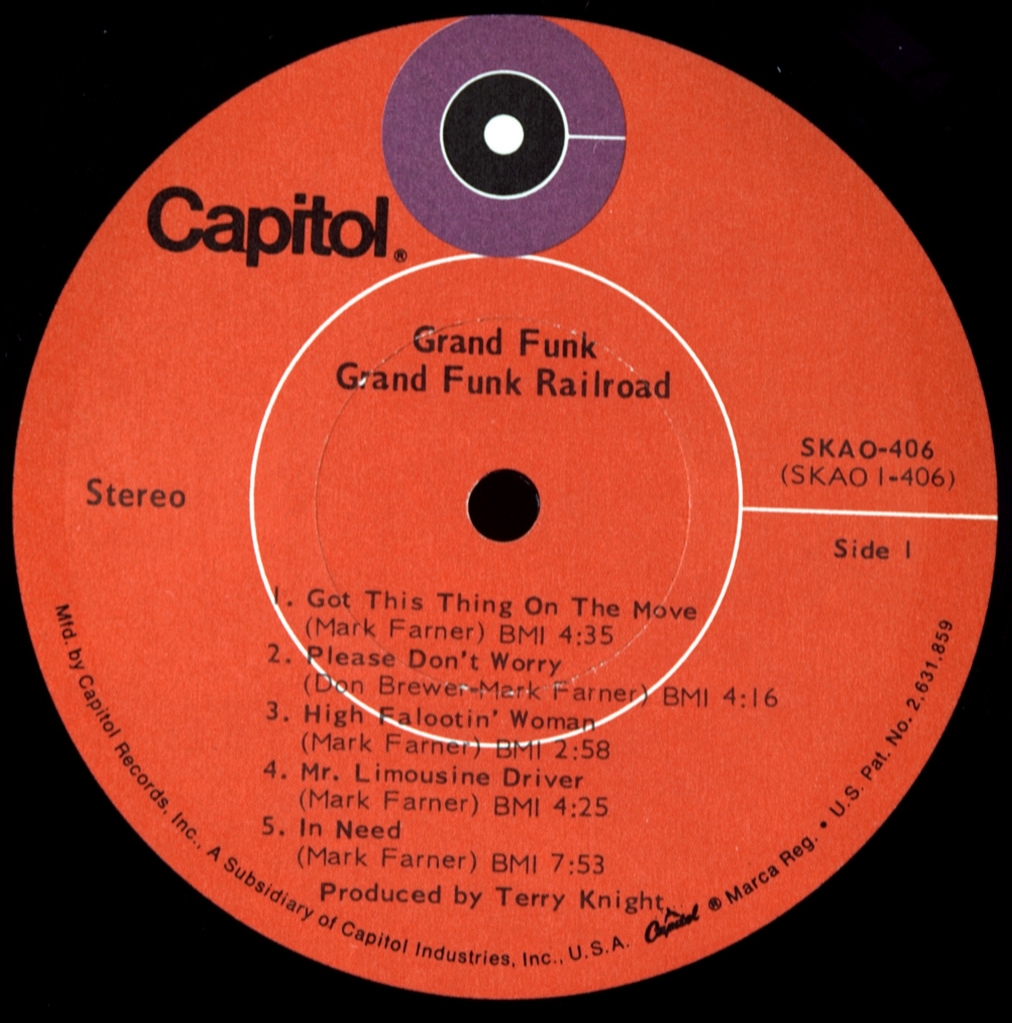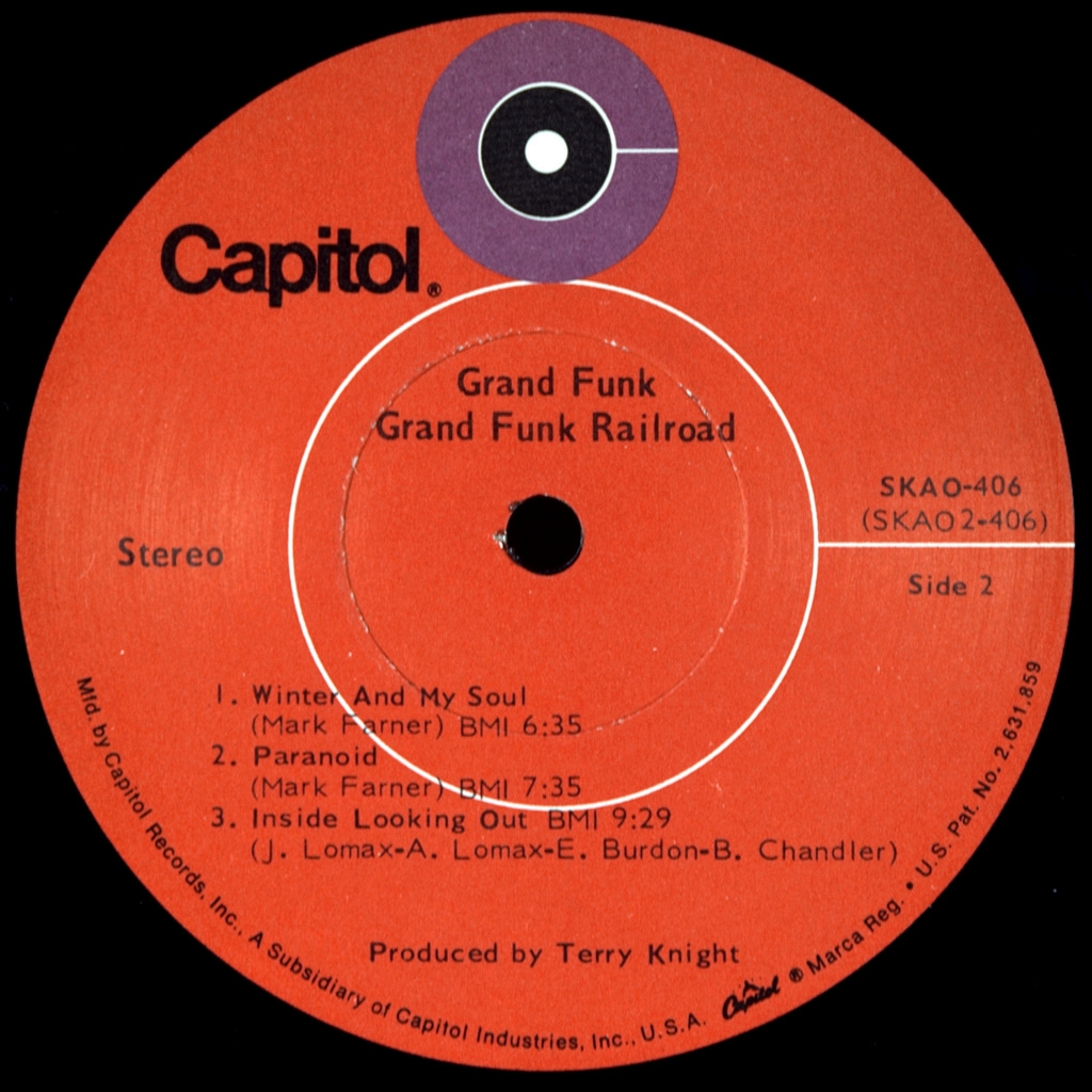 GRAND FUNK RAILROAD-GRAND FUNK-1969-ВТОРОЙ ПРЕСС USA -SKAO-406 Очень редкий второй пресс культового альбома. Grand Funk (также известный как The Red Album) — второй студийный альбом американской рок-группы Grand Funk Railroad, выпущенный в декабре 1969 года на Capitol Records спустя четыре месяца после дебютного On Time. Продюсером выступил Терри Найт, а звукорежиссёром — Кен Хаманн. Он стал первым альбомом группы, которому RIAA присвоила статус золотого. В него вошёл кавер на песню The Animals «Inside Looking Out», который исполняется на концертах группы и по сей день.