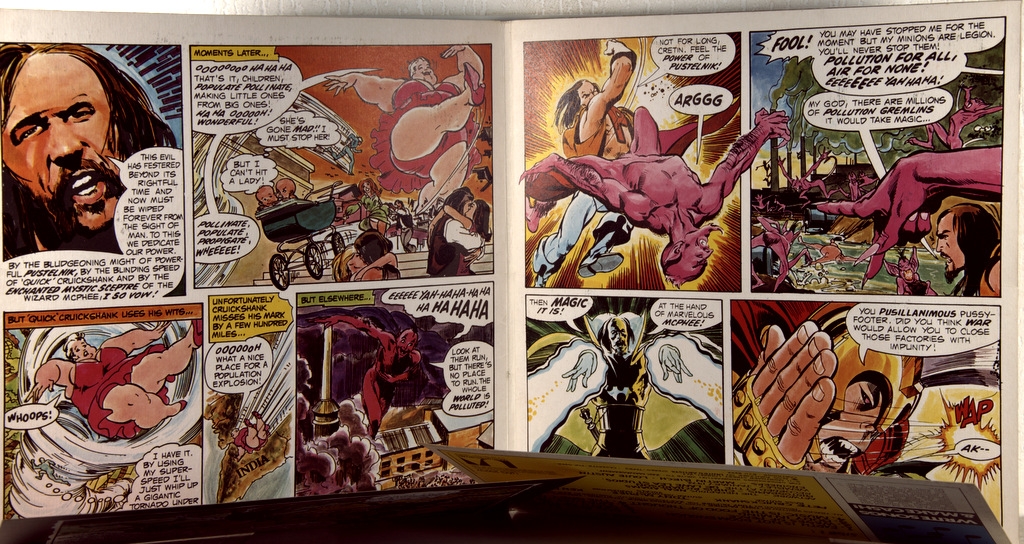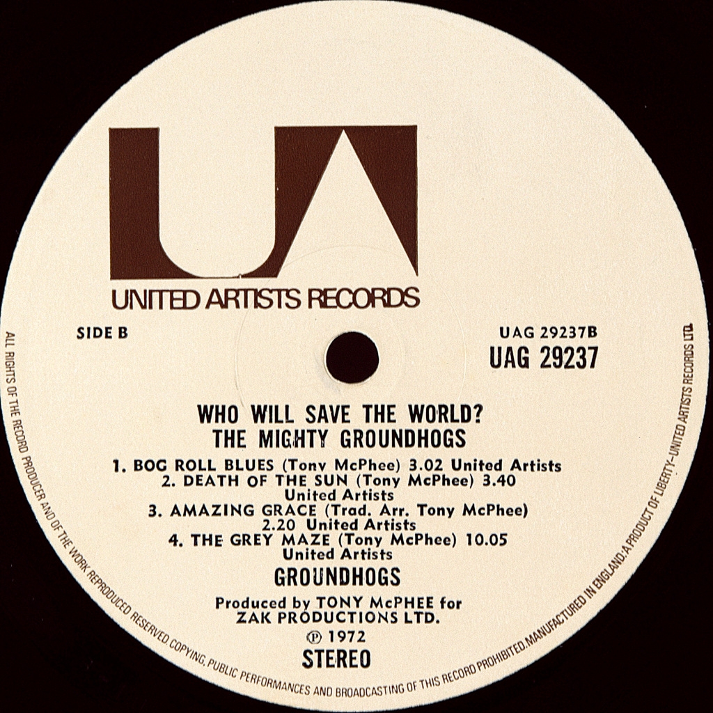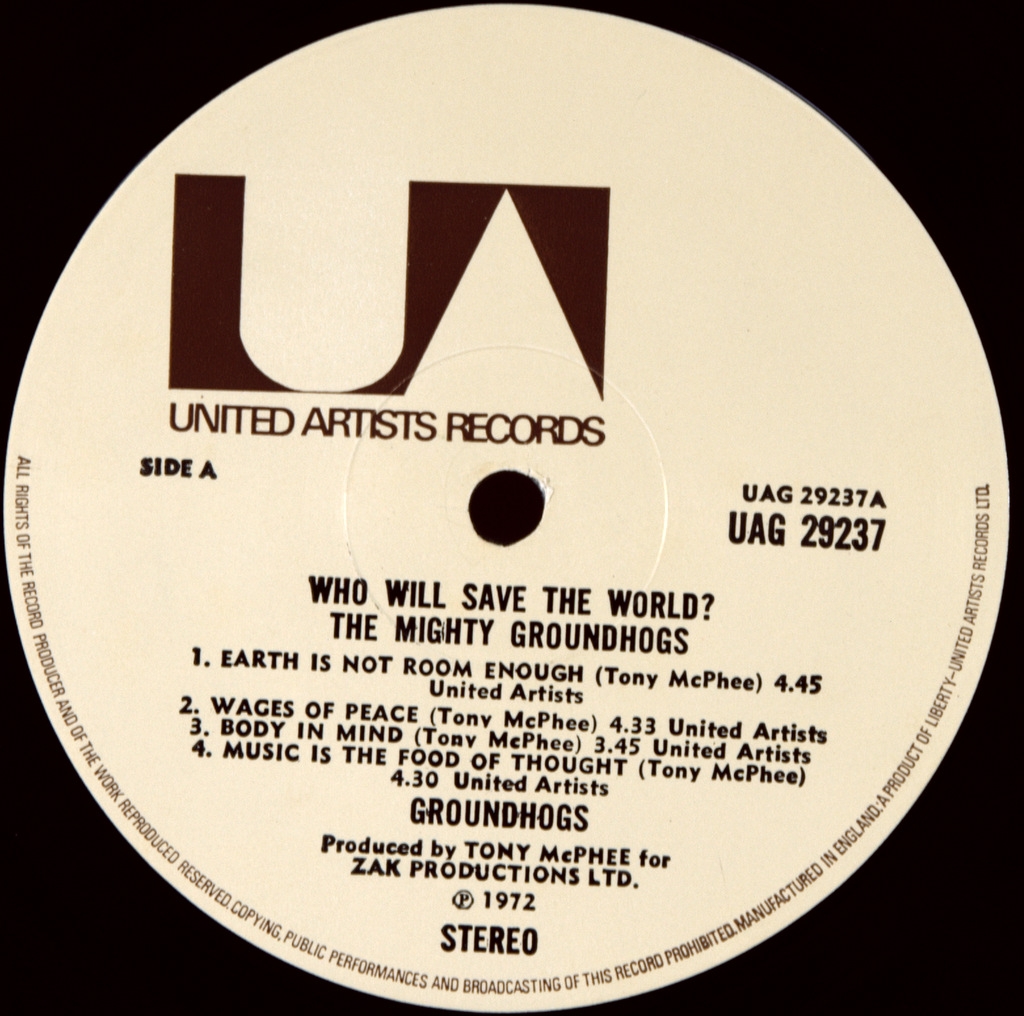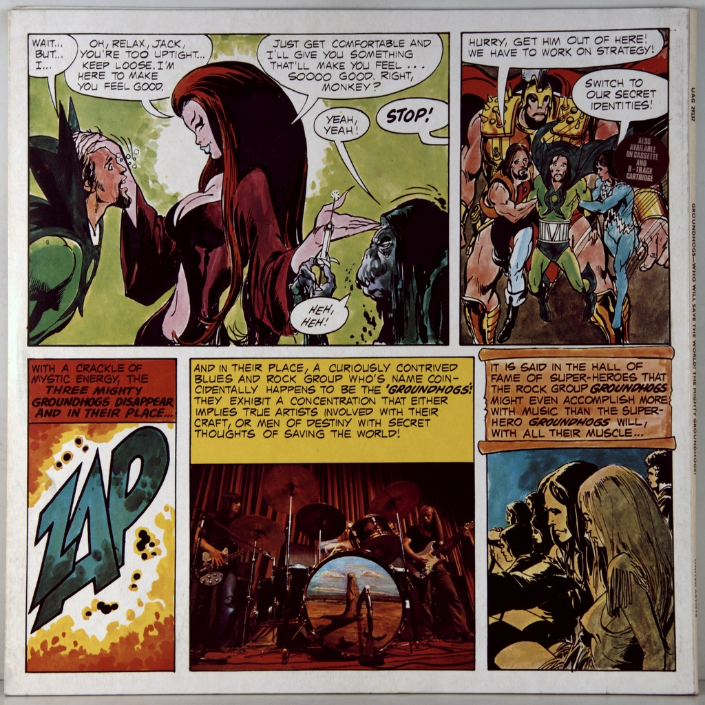 GROUNDHOGS-WHO WILL SAVE THE WORLD?-1972-ПЕРВЫЙ ПРЕСС UK-UA-UAG29237. Матрицы A-1U/B-1U Очень редкий британский оригинал культовой прог-блюз группы. WHO WILL SAVE THE WORLD?-альбом 1972 года, записанный The Groundhogs, первоначально выпущенный United Artists Records в 1972 году, Обложка выполнена в виде комикса с изображением сурков, изображенных супергероями, нарисованных художником комиксов Нилом Адамсом. По сюжету они борются с олицетворенным злом перенаселения, загрязнения окружающей среды, войны, "Свинобизнеса" и "Священной коровы" (религии), а также с Обезьяной-наркоманом. Каждый из участников группы борется со своим злом, мешающим им с самого начала только для того, чтобы они выделились и посеяли хаос в другой части земного шара. Тексты каждой песни затрагивают эти темы, и, несмотря на комический характер обложки, тексты довольно серьезны, поскольку политически и социально мотивированы.Это был первый альбом Groundhogs, вышедший за рамки гитарных / басовых / ударных инструментов, при этом Макфи использовал клавишные (меллотрон и фисгармония) на ряде треков.