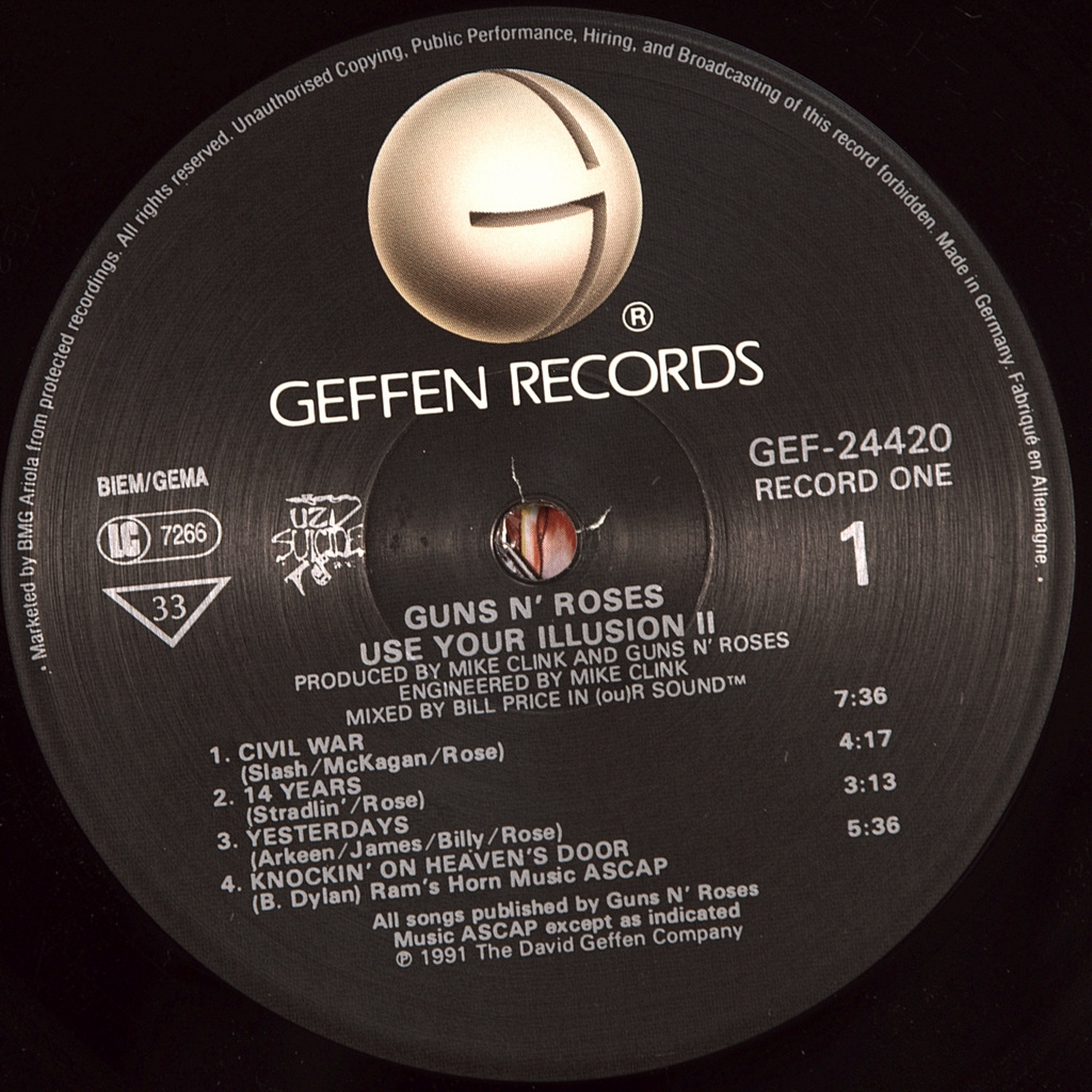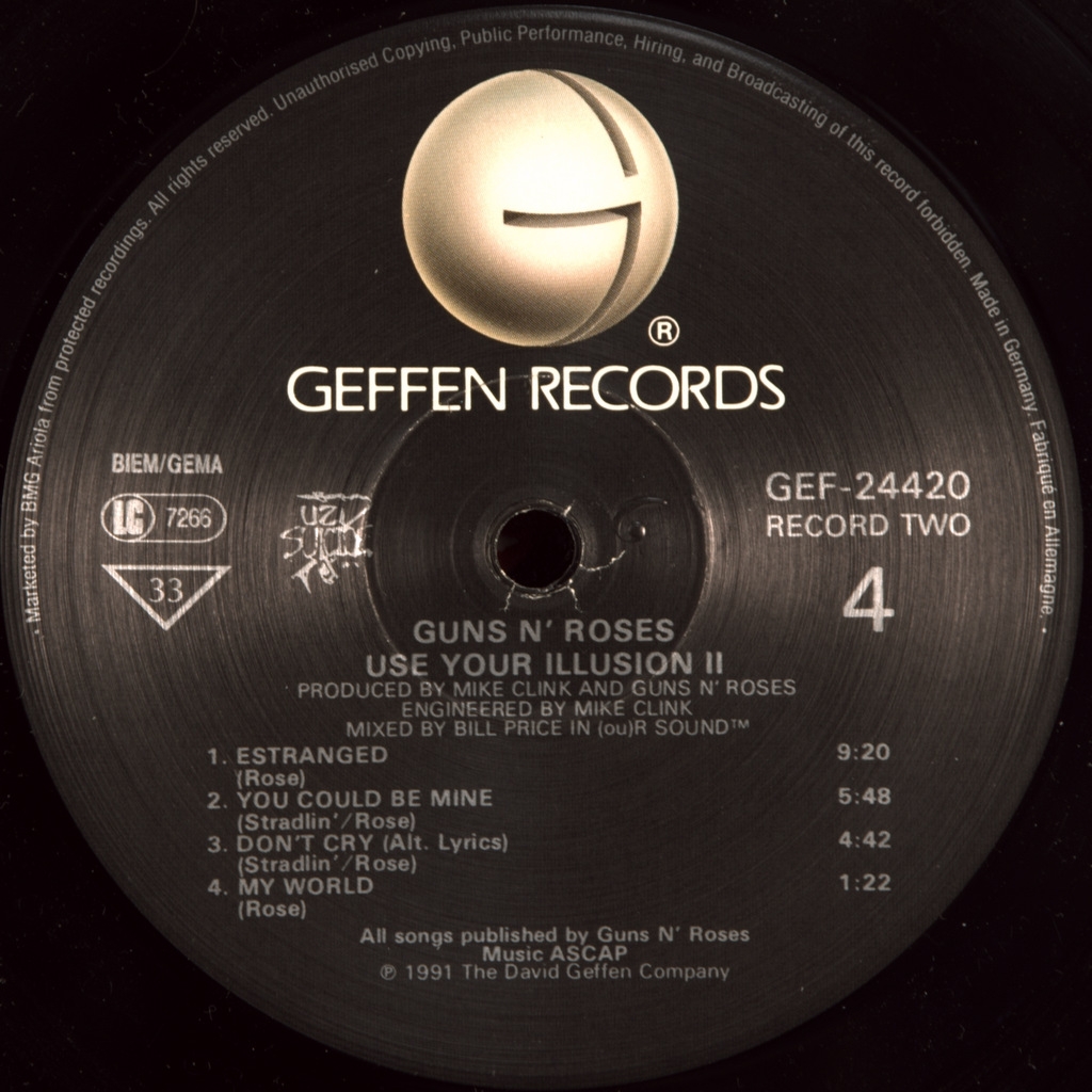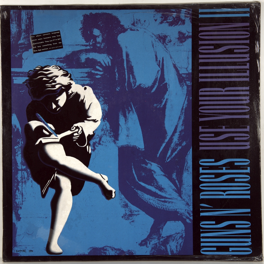 GUNS N' ROSES - USE YOUR ILLUSION -2 - ПЕРВЫЙ ПРЕСС UK/EU-GEFFEN-GEF24420. Очень редкий оригинал культового альбома. Use Your Illusion II — четвертый студийный альбом американской рок-группы Guns N’ Roses, вышедший в 1991 году. Диск первый из двух альбомов, вышедших в связи с туром Use Your Illusion Tour. Второй альбом вышел под названием Use Your Illusion II. Диск поднялся на второе место чарта Billboard. За первую неделю было продано 685 000 экземпляров, Use Your Illusion II был немного успешнее (770 000 за первую неделю). Use Your Illusion I в США продавался тиражом в 5 502 000, утверждает Nielsen SoundScan..Каждый из альбомов Use Your Illusion стал семикратным платиновым (RIAA). Альбом был номинирован на Grammy Award в 1992 г.