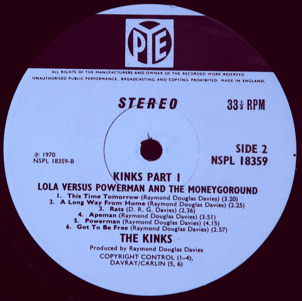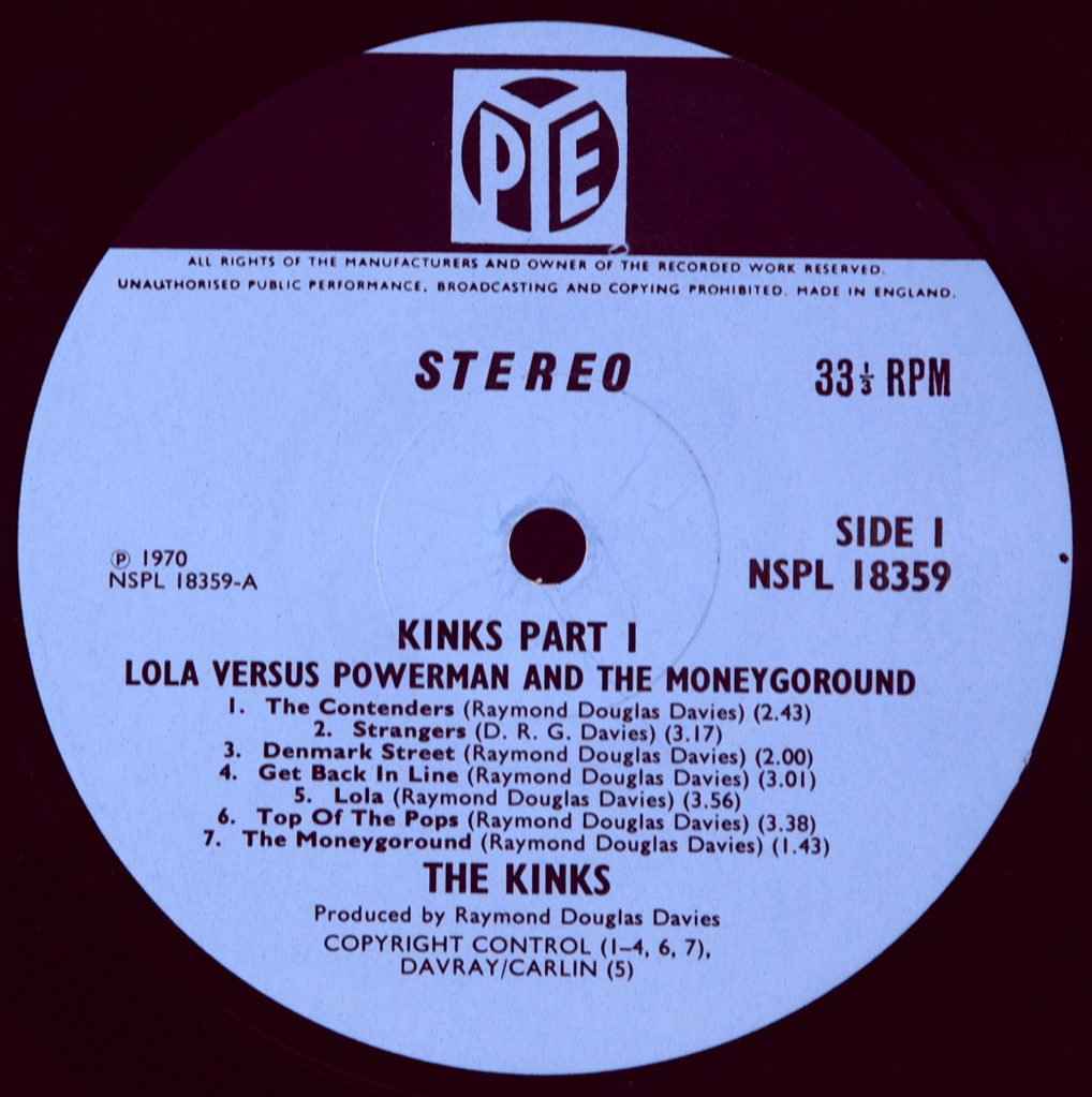 KINKS- PART 1 LOLA VERSUS POWERMAN AND THE MONEYGOROUND-1970-ПЕРВЫЙ ПРЕСС UK-PYE-NSPL18359 Матрицы A-1/B-3 . Очень редкий оригинал культового альбома Lola Versus Powerman and the Moneygoround, Part One, обычно сокращаемый до Lola Versus Powerman или просто Lola, — восьмой студийный альбом английской рок-группы The Kinks, выпущенный 27 ноября 1970 года. Это концептуальный альбом, представляющий собой сатирическую оценку музыкальной индустрии, включая издателей песен, профсоюзы, прессу, бухгалтеров, бизнес-менеджеров и жизнь на гастролях. Это ознаменовало расширение группы до пяти человек с добавлением клавишника Джона Гослинга. Несмотря на то, что альбом Lola Versus Powerman вышел в переходный для The Kinks период, он имел успех как у критиков, так и у публики, попав в топ-40 в Америке и вернув группу в поле зрения общественности, став «возвращением». В него вошли два хита сингла: «Lola», который вошёл в топ-10 в США и Великобритании, и «Apeman», который занял пятое место в Великобритании.