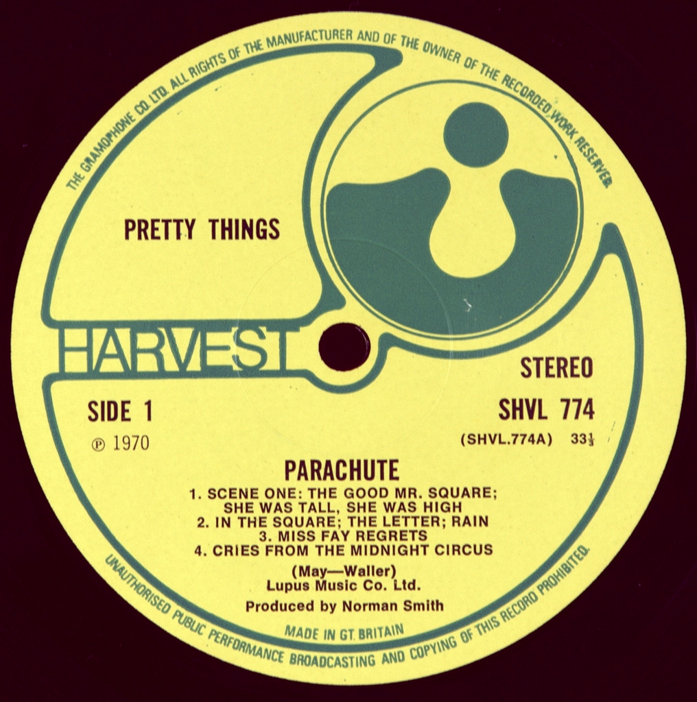 PRETTY THINGS-PARACHUTE-1970-ПЕРВЫЙ ПРЕСС-UK-HARVEST-SHVL774. Матрицы A-2/B-2 Стемпера 1H/1P (Очень рано!) Очень редкий оригинал одного из культового альбомов Великобритании. Parachute — пятый студийный альбом английской рок-группы Pretty Things, выпущенный в 1970 году. Это их первый альбом без гитариста Дика Тейлора. Рецензии на момент выхода альбома были очень положительными, а Billboard назвал его «ещё одним первоклассным альбомом» группы. В 1975 году критик Rolling Stone Стив Тернер написал, что это был "альбом года по версии Rolling Stone",