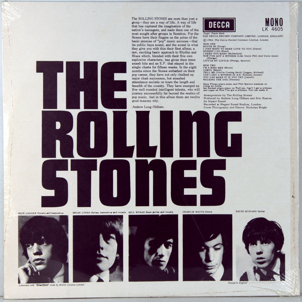 ROLLING STONES-ROLLING STONES (MONO)-1964-ПЕРВЫЙ ПРЕСС UK-DECCA-LK4605. Матрицы A-2A/B-5A. Стампера 1I/1DM (Очень рано!) Очень редкий оригинал первого альбома RS. The Rolling Stones-дебютный студийный альбом британской рок-группы The Rolling Stones. Альбом занимал первую позицию в UK Albums Chart со 2 мая по 25 июля 1964 года и в австралийском Kent Music Report с 16 января по 5 февраля 1965 года. Однако в американском Billboard 200 альбом достиг лишь 11 позиции.