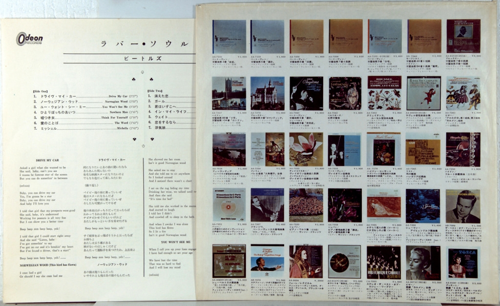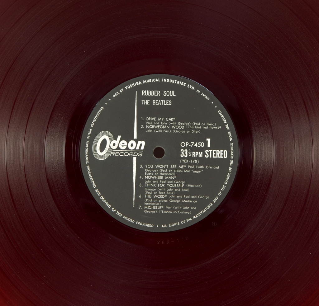 BEATLES-RUBBER SOUL (STEREO)-1965-ПЕРВЫЙ ПРЕСС JAPAN-ODEON-OP7450. Очень редкий японский оригинал на красном виниле в полной комплектации. Rubber Soul — шестой студийный альбом группы The Beatles, выпущенный 3 декабря 1965 года. Альбом был записан всего лишь за четыре недели, спешка была обусловлена желанием успеть выпустить альбом к рождественским праздникам. По мнению многих музыковедов, именно с альбома Rubber Soul в творчестве группы начались коренные изменения, которые привели к развитию множества необычных суб-течений в рок-музыке.