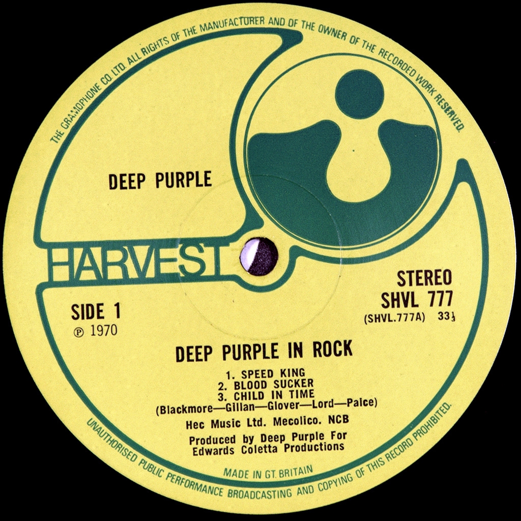 DEEP PURPLE-IN ROCK-1970- ПЕРВЫЙ ПРЕСС UK-HARVEST- SHVL777. Матрицы A-2/B-1. Контрактный пресс на фабрике Gryphon APS . Стампера отсутствуют. Эксперты отмечают великолепный звук этого издания. Редкий британский оригинал контрактного пресса в топ состоянии. Deep Purple in Rock -четвёртый студийный альбом британской рок-группы Deep Purple, вышедший 5 июня 1970 года на лейбле Harvest Records. Это первый студийный альбом, записанный в классическом составе группы, называемом «Mark II» (немного ранее этот состав записал концертный альбом Concerto for Group and Orchestra). Начиная с этого альбома, стиль группы кардинально поменялся. Deep Purple заиграли в стиле хард-рок практически одновременно с такими группами, как Black Sabbath, Led Zeppelin, Uriah Heep, и считаются одними из основателей и классиков этого жанра. По словам музыкального критика, «пластинка стала эпицентром разрушения, свежей струёй в роке 1970-х годов и поворотом в истории, в котором были заложены корни стиля хеви-метал». Deep Purple in Rock стал прорывным альбомом группы в Европе и занял четвёртое место в национальном хит-параде Великобритании, оставаясь в чартах более года. Сопутствующий ему сингл «Black Night» достиг 2-й строки. Включён в разнообразные списки лучших альбомов, в том числе, журналом Classic Rock — в список «100 величайших британских альбомов всех времён» и журналом Q — в список «50 лучших альбомов 70-х годов». В 2015 году американский сайт Ultimate Classic Rock поставил альбом на вершину своего рейтинга лучших работ Deep Purple. Сертифицирован как золотой диск в Великобритании, США, Франции, Нидерландах и Аргентине.