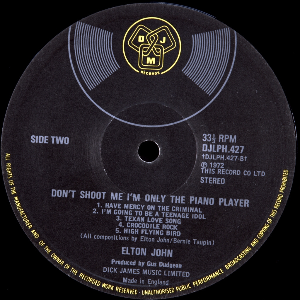 JOHN, ELTON-"DON'T SHOOT ME" I'M ONLY THE PIANO PLAYER-1972-ПЕРВЫЙ ПРЕСС UK-DJM- DJLPH427. Матрицы A-3/B-3. Редкий британский оригинал . Don’t Shoot Me I’m Only the Piano Player— шестой студийный альбом британского музыканта Элтона Джона, вышедший в 1972 году. Самый продаваемый английский альбом года, Don’t Shoot Me I’m only the Piano Player особняком выделяется среди прочих альбомов Элтона Джона, сочетая в себе различные музыкальные и смысловые интерпретации. Во всём мире было продано более 19 миллионов копий альбома, став мильтиплатиновым по обе стороны океана.