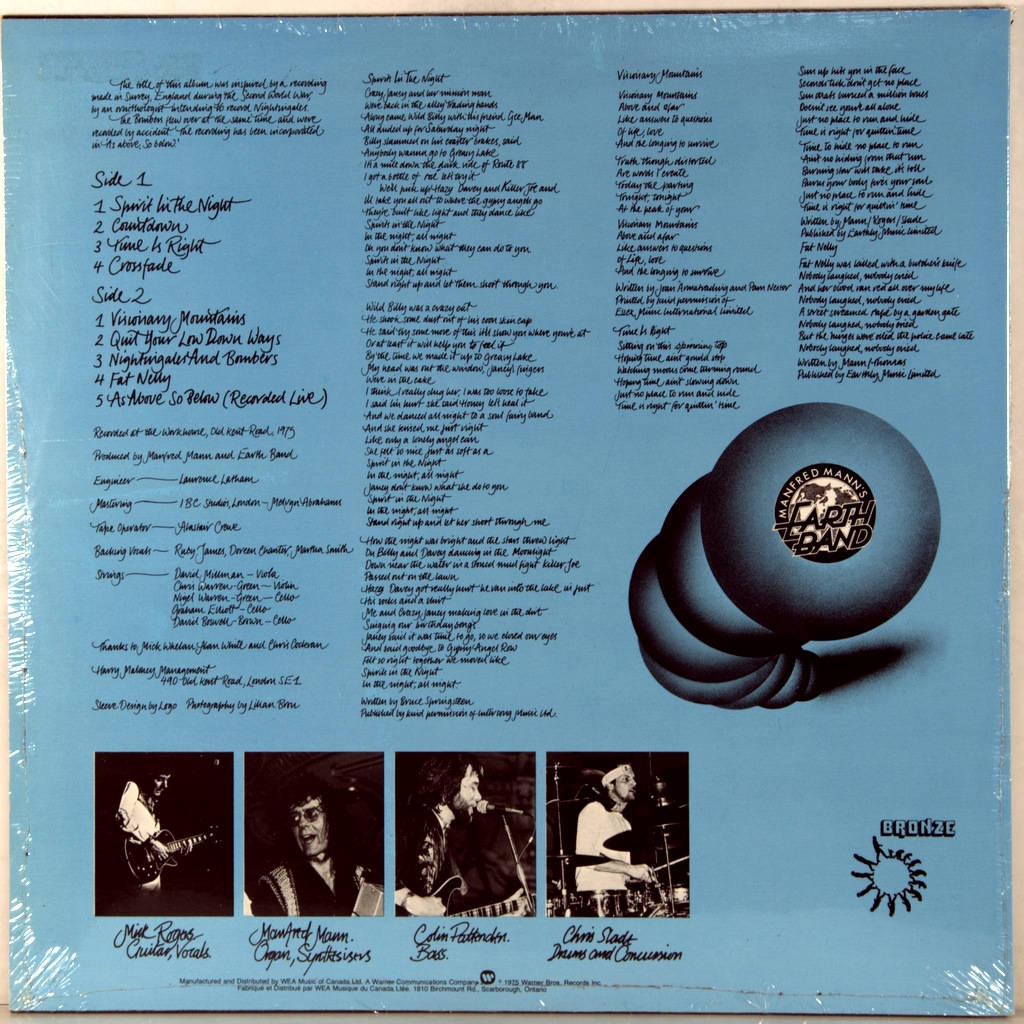 MANFRED MANN'S EARTH MAND-NIGHTINGALES & BOMBERS-1975-ОРИГИНАЛЬНЫЙ ПРЕСС 1979 CANADA-WARNER- BS2877. Канадское раннее издание в топ состоянии Вершина творчества группы. Nightingales AND Bombers - шестой студийный альбом британской рок-группы Manfred Mann’s Earth Band, выпущенный 22 августа 1975 года на лейбле Bronze Records. Диск поднялся до #120 в Billboard 200 всех альбомов рок иерархии.