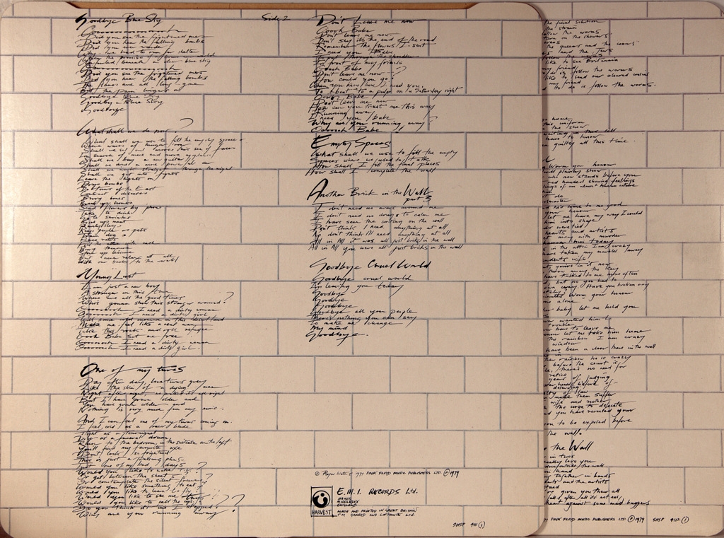 PINK FLOYD-THE WALL (2VINYL)-1979-ПЕРВЫЙ ПРЕСС UK-HARVEST - SHDW411 Матрицы A-2U/B-2U/C-1U/D-2U (Очень рано!!!!) The Wall- одиннадцатый студийный альбом британской прогрессив-рок-группы Pink Floyd. Был выпущен 30 ноября 1979 года на двух дисках. Это последний релиз группы, записанный в классическом составе: Дэвид Гилмор (гитара), Роджер Уотерс (бас), Ник Мейсон (ударные) и Ричард Райт (клавишные). The Wall явился одним из самых коммерчески успешных альбомов 1980 года, заняв верхнюю строчку нескольких хит-парадов, в том числе Billboard; к 1999 году в США было продано свыше 23 миллионов копий, благодаря чему The Wall вошёл в тройку самых продаваемых альбомов в США. Журнал Rolling Stone поместил эту запись на 87-е место в своём списке «500 величайших альбомов всех времён».
