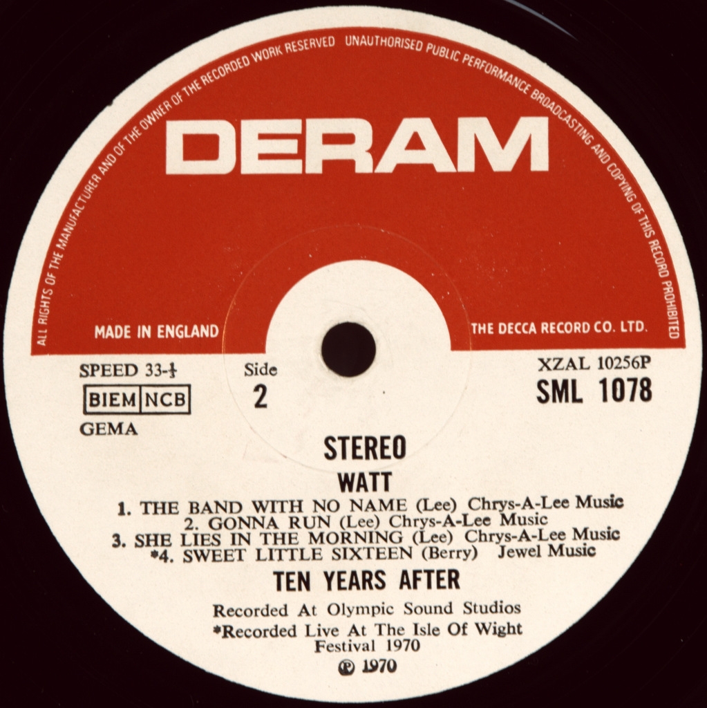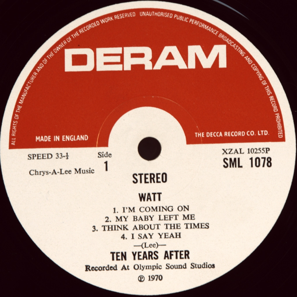TEN YEARS AFTER-WATT-1970-ПЕРВЫЙ ПРЕСС UK-DERAM-SML1078 Матрицы XZAL10255,P-2W/XZAL10256,P-1W, Стампера 1UU/1GG (Очень рано!) Очень редкий оригинал в полном комплекте (плакат 65 см х 65 см) культовой британской рок блюзовой группы. Альбом Watt прозвучал во многом как продолжение «Cricklewood Green»: основу его составляют те же заострённые риффы и «рассерженный» вокал, разве что общее настроение тут чуть посветлее. Элвин Ли начал экспериментировать с усложнёнными песенными структурами, но наибольшего эффекта добился в риффовых вещах («I’m Coming On»), соул-кантри «My Baby Left Me» (к песне Элвиса Пресли не имеющей отношения), «I Say Yeah», где синтезатор звучит вполне в духе Кита Эмерсона («Aquatarkus») и балладе «Think About The Times».. После выхода альбома Watt контракт группы истёк, и Райт перевел её в Columbia Records.