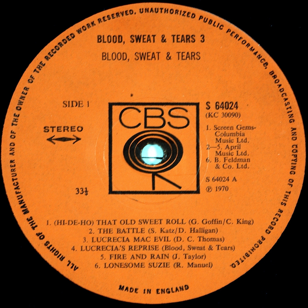 BLOOD, SWEAT & TEARS-BLOOD, SWEAT & TEARS 3-1970-ПЕРВЫЙ ПРЕСС UK-CBS - CBS-S 64024. Матрицы A-1/B-1 Редкий британский оригинал культового альбома. Blood, Sweat & Tears 3-третий альбом группы Blood, Sweat & Tears, выпущенный в июне 1970 года.После огромного успеха их предыдущего альбома, Blood, Sweat & Tears 3 был очень ожидаемым, и он быстро поднялся на вершину американского альбомного чарта. Он дал два сингла хита: кавер-версию песни Кэрол Кинг"Hi-De-Ho" и "Lucretia MacEvil"." Тем не менее, альбом сильно полагался на материал обложки и получил теплые отзывы. Billboard 200 в 1970 году поставил альбом на первое место.
