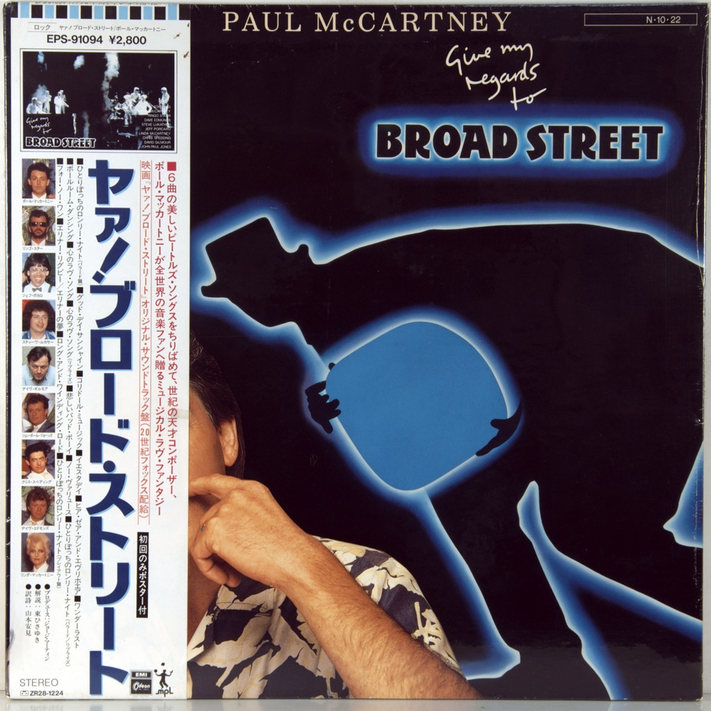 MCCARTNEY, PAUL-GIVE MY REGARDS TO BROAD STREET-1984-ПЕРВЫЙ ПРЕСС JAPAN-ODEON- EPS91094.Редкий японский оригинал культового альбома. Give My Regards to Broad Street- пятый сольный студийный альбом Пола Маккартни, а также альбом саундтреков к его одноименному фильму 1984года. Альбом занял 1 - е место в британском чарте. Ведущий сингл "No More Lonely Nights" был номинирован на премию BAFTA и премию "Золотой глобус". Это также должен был быть его последний альбом, выпущенный под лейблом Columbia Records, который был его американским лейблом более пяти лет..