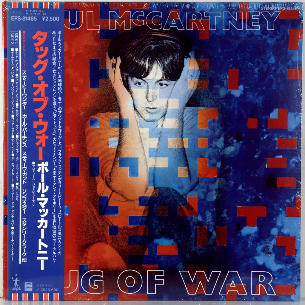 MCCARTNEY, PAUL-TUG OF WAR-1982-ПЕРВЫЙ ПРЕСС JAPAN-ODEON-EPS-81485. Редкий японский оригинал культового альбома. Tug of War — третий сольный студийный альбом английского музыканта Пола Маккартни, выпущенный 26 апреля 1982 года. Это его 11-й альбом после распада The Beatles в 1970 году, его первый альбом, выпущенный после распада его группы Wings в прошлом году, и его первый альбом после убийства его бывшего соавтора Джона Леннона. Из Rolling Stone музыкальный критик Стивен Холден назвал Tug of War «шедевром, который, как все всегда знали, мог создать Пол Маккартни», и особенно восхитился его яркой музыкой и последовательным написанием песен. Альбом восстановил репутацию Маккартни в глазах критиков после того, что считалось для него тяжёлым периодом. Tug of War был номинирован на премию «Альбом года» «Грэмми» в 1983 году.
