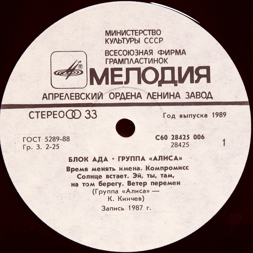 АЛИСА - БЛОК АДА -1987-ПЕРВЫЙ ПРЕСС USSR-MELODIA-C6028425006. Редкий оригинал культового альбома. «Блок ада» (также «Блокада») — второй студийный альбом рок-группы «Алиса». Был записан в 1987 году. Запись проходила в передвижной студии «Тонваген» (фирма «Мелодия») в течение трёх дней в мае 1987 года в посёлке Шушары под Ленинградом. Две стороны альбома получили название «Красное» и «Чёрное». «Блок ада» был издан как магнитоальбом в 1987 году, а через два года был выпущен на виниле одновременно с альбомом «Шестой лесничий». По официальным данным, тираж пластинок превысил 1 000 000 экземпляров, что в США соответствует платиновому статусу. По словам Константина Кинчева название альбома имеет двойной смысл и может писаться в одно и в два слова, так как не существует установленного варианта