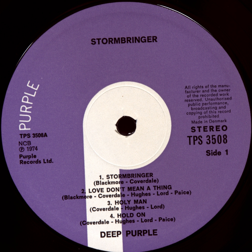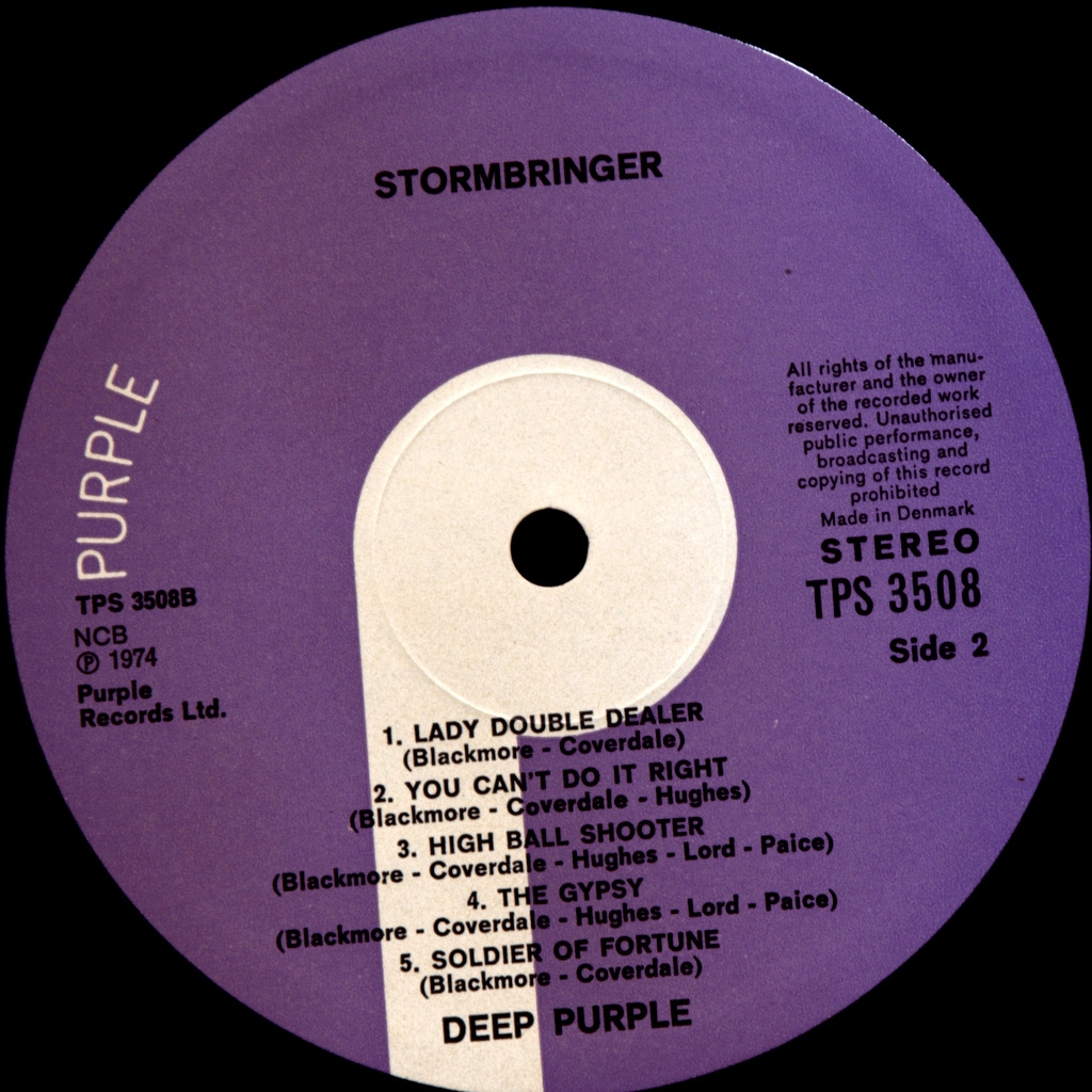 DEEP PURPLE-STORMBRINGER-1974-Первый пресс DANMARK-PURPLE RECORDS -TPS3508 . Редкий датский оригинал.Stormbringer является девятым студийным альбомом английской хард-рок группы Deep Purple, выпущенным в ноябре 1974 года, и вторым студийным альбомом, на котором представлена линейка Mk III, включая вокалиста Дэвида Кавердейла и басиста/вокалиста Гленна Хьюза .