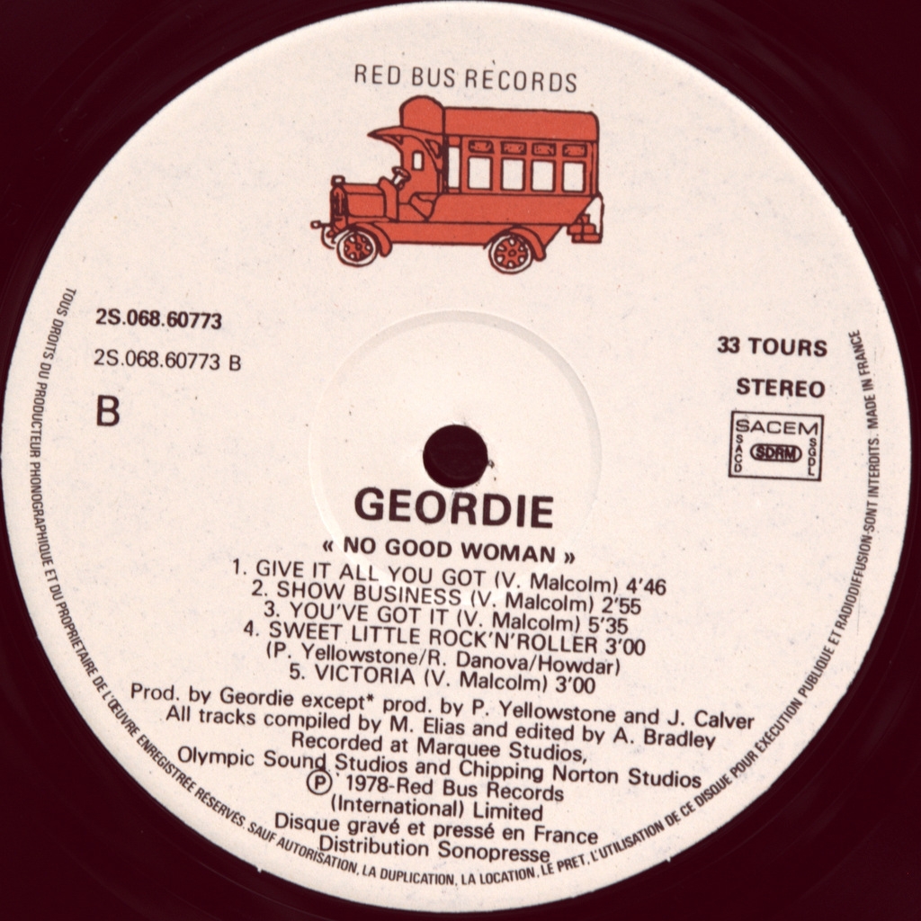 GEORDIE-NO GOOD WOMAN-1978-ПЕРВЫЙ ПРЕСС FRANCE-RED BUS-2S068.60773. Очень редкий европейский оригинал иконы хард рок стиля в топ состоянии. No Good Woman — четвёртый студийный альбом британской глэм-рок-группы Geordie. В него вошли треки, записанные предыдущими составами, а также несколько новых композиций. Это последний альбом группы с оригинальным вокалистом Брайаном Джонсоном, который покинул группу, чтобы присоединиться к AC/DC в 1980 году.