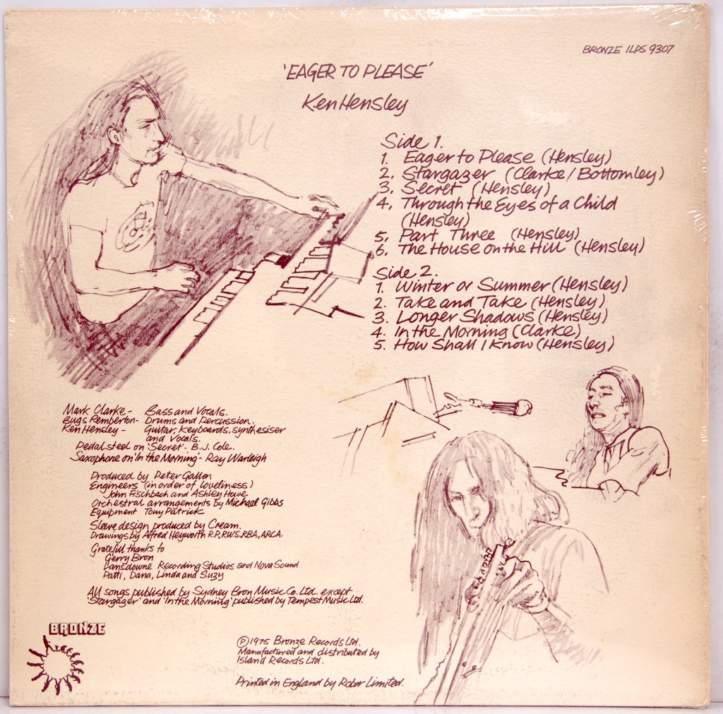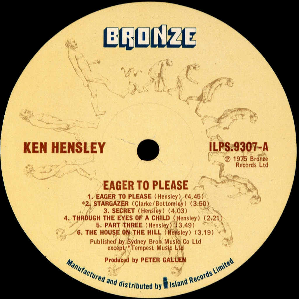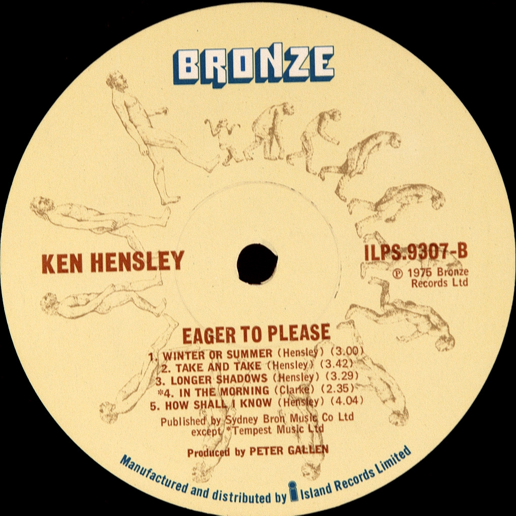 HENSLEY, KEN (EX-URIAH HEEP) -EAGER TO PLEASE-1975-ПЕРВЫЙ ПРЕСС UK-BRONZE-ILPS9307. Матрицы A-1/B-1 Редкий британский оригинал второго сольного альбома KEN HENSLEY ( URIAH HEEP) Eager To Please - второй сольный альбом Кена Хенсли, известного как лидер английской рок-группы Uriah Heep, вышедший в 1975 году на Bronze Records и на Warner Bros. Records. Подбодрившись успехом своего дебютного сольника Proud Words on a Dusty Shelf (1973), Кен Хенсли записал в 1975 году вторую сольную работу, назвав её Eager To Please, что значит "Стараюсь угодить" или "Стремлюсь понравиться". Насколько стремился Хенсли понравиться публике это судить каждому. Но исходя из вкусов среднестатистического фана группы Uriah Heep, понятно, что от Кена ожидали чего-то похожего.