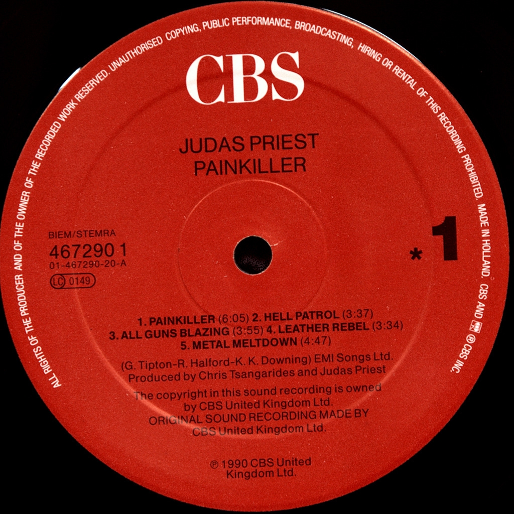 JUDAS PRIEST-PAINKILLER-1990-ПЕРВЫЙ ПРЕСС UK/EU- HOLLAND-CBS-467290-1. Редкий европейский оригинал культовой хард группы. Painkiller — двенадцатый студийный альбом английской хэви-метал группы Judas Priest, выпущенный 17 сентября 1990 года и 18 сентября в США. Это был последний альбом Judas Priest с участием давнего вокалиста Роба Хэлфорда до его возвращения в 2005 году для записи альбома Angel of Retribution и первый альбом с участием барабанщика Скотта Трэвиса. В январе 1991 года альбом получил статус «золотого» по версии RIAA. Альбом был номинирован на премию «Грэмми» в категории «Лучшее метал-исполнение» на 33-й ежегодной церемонии вручения премии «Грэмми», уступив каве Metallica на песню Queen «Stone Cold Crazy».