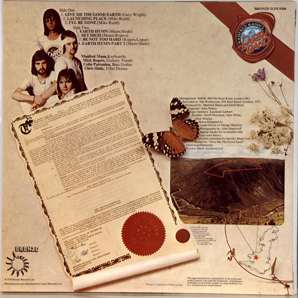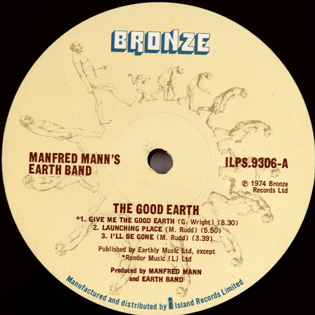 MANFRED MANN'S EARTH BAND-THE GOOD EARTH-1974-ПЕРВЫЙ ПРЕСС UK-BRONZE -ILPS9306. матрицы A-2U/B-2U, The Good Earth — пятый студийный альбом британской рок-группы Manfred Mann’s Earth Band, выпущенный 11 октября 1974 года лейблом «Bronze Records» в Великобритании и лейблом «Warner Bros. Records» в США. Диск поднялся до #157 в Billboard 200 всех альбомов рок иерархии.