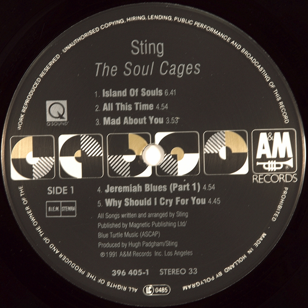 STING-THE SOUL CAGES-1991-ПЕРВЫЙ ПРЕСС-HOLLAND-AM номер 396405-1. Очень редкий европейский оригинал оригинал культового альбома. The Soul Cages - третий студийный альбом британского рок-музыканта Стинга, был выпущен 22 января 1991 года. Он стал вторым альбомом певца, который достиг вершины национального чарта на его родине. В поддержку альбома было выпущено четыре сингла: «All This Time», «Mad About You», «Why Should I Cry For You» и «The Soul Cages», последний выиграл премию «Грэмми» в номинации «Лучшая рок-песня» в 1992 году.