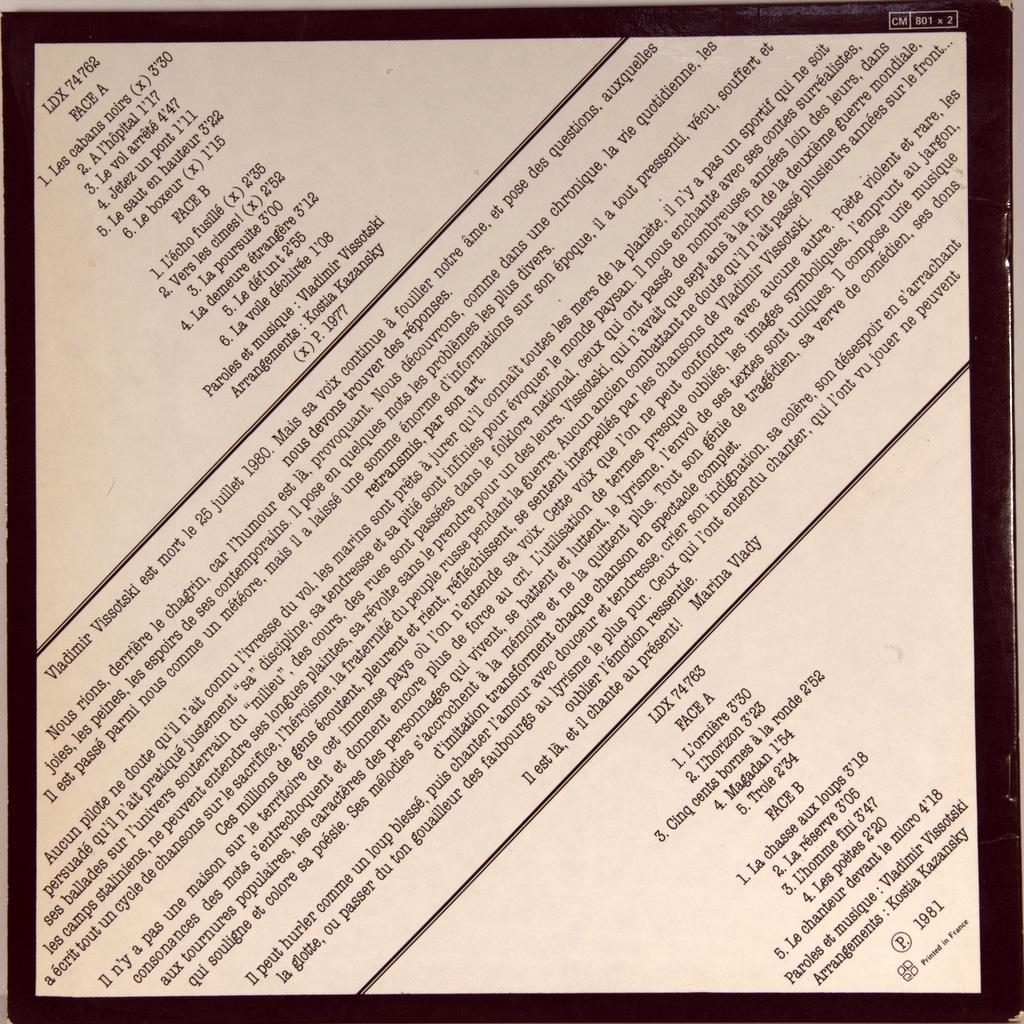 VISSOTSKI VLADIMIR(ВЫСОЦКИЙ ВЛАДИМИР)-LE VOL ARRETE-1977-ПЕРВЫЙ ПРЕСС 1981-FRANCE-LE CHANT DU MONDE-LDX74762. Двойной альбом записан 1975-1977 году и вышел в 1981 году. Один из самых популярных альбомов записанных во Франции.