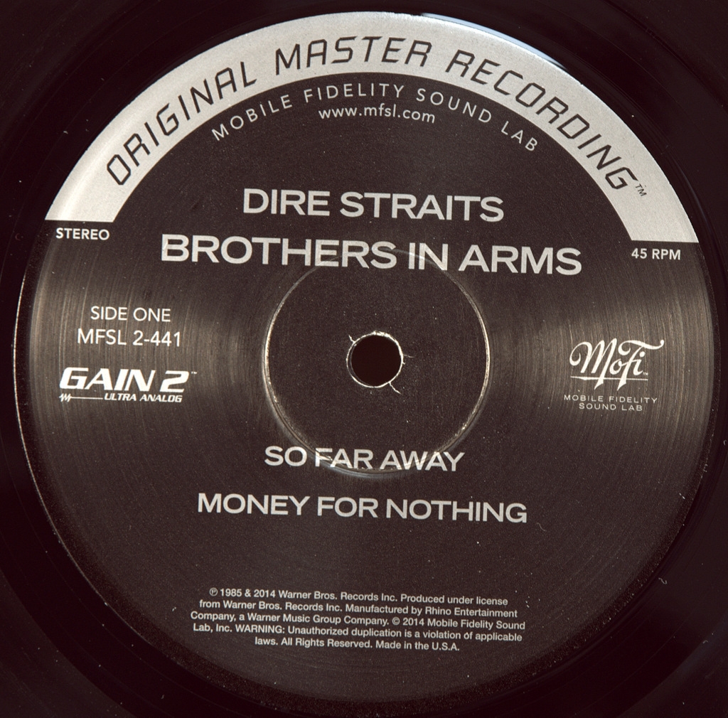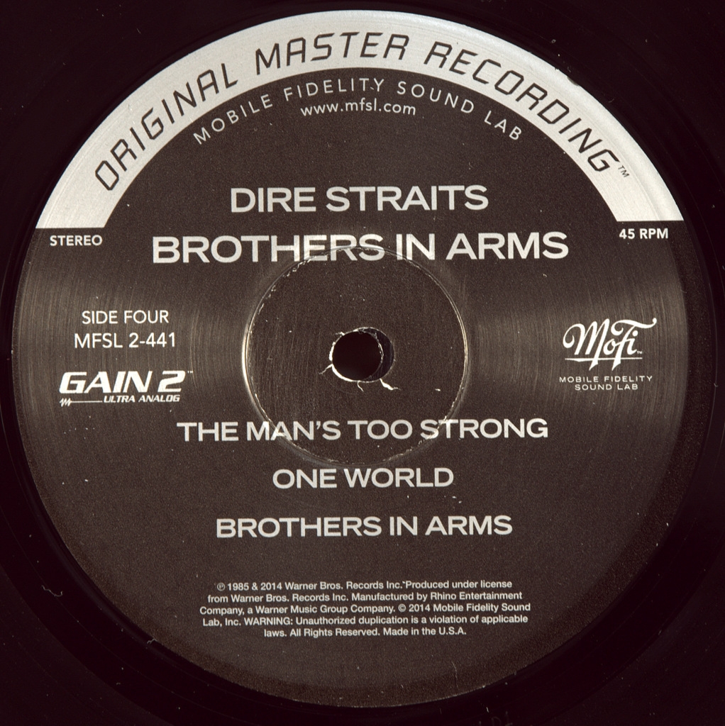 DIRE STRAITS--BROTHERS IN ARMS (2LP'S 45RPM)-1985-ОРИГИНАЛЬНЫЙ ПРЕСС 2014 USA-MOFI-MFSL 2-441. .Редкое аудиофильное издание культового альбома на двух пластинках, записанных на 45 скорости.. Brothers in Arms — пятый студийный альбом британской рок-группы Dire Straits, выпущенный 17 мая 1985 года на лейбле Vertigo Records на международном уровне и Warner Bros. Records в США. Brothers in Arms в общей сложности 14 недель подряд занимали первое место в британском чарте альбомов (в том числе десять недель подряд с 18 января по 22 марта 1986 года), девять недель подряд занимали первое место в Billboard200 в США и 34 недели подряд занимали первое место в австралийском чарте альбомов. Это был первый альбом, получивший десятикратную платиновую сертификацию в Великобритании[6] и ставший восьмым самым продаваемым альбомом в истории британских чартов. Он получил девятикратную платиновую сертификацию в США от Американской ассоциации звукозаписывающих компаний (RIAA) и является одним из самых продаваемых альбомов в мире, разошедшимся тиражом более 30 миллионов копий по всему миру.[8][9][10] Для продвижения альбома группа Dire Straits отправилась в тур Brothers in Arms Tour, который проходил с 1985 по 1986 год. Альбом получил премию «Грэмми» в 1986 году в номинации «Лучший неклассический альбом с точки зрения звукорежиссуры» и был признан лучшим британским альбомом на премии Brit Awards 1987 года; переиздание к 20-летию альбома получило ещё одну премию «Грэмми» в 2006 году в номинации «Лучший альбом с объёмным звучанием». В 2020 году журнал Rolling Stone поставил Brothers in Arms на 418-е место в своём списке «500 величайших альбомов всех времён». Журнал Q поставил его на 51-е место в списке «100 величайших британских альбомов всех времён».