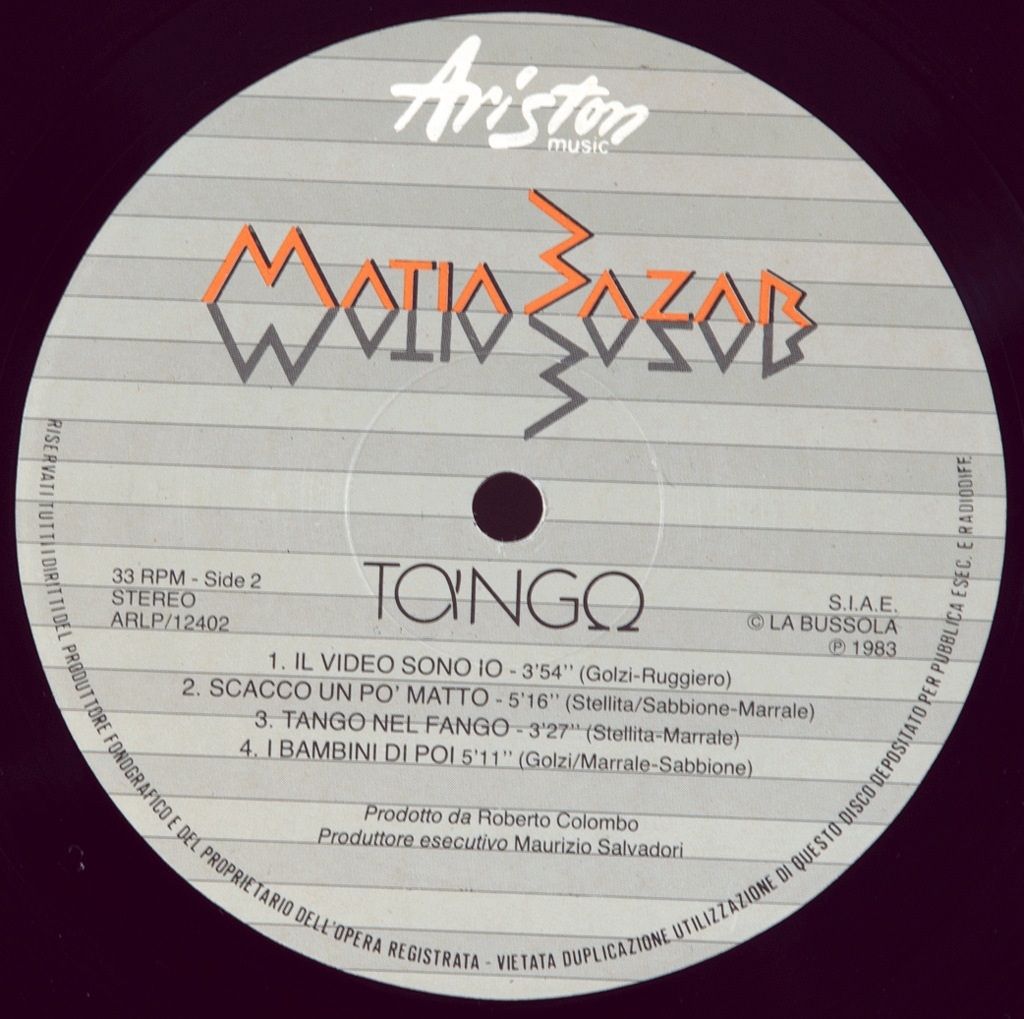 MATIA BAZAR-TANGO-1983-ПЕРВЫЙ ПРЕСС ITALY-CDG-ARLP12402. Редкий итальянский оригинал культовой рок-поп группы. Tango-седьмой студийный альбом группы Matia Bazar, выпущенный в 1983 году Ariston (каталог AR LP 12402).