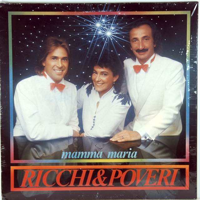 RICCHI AND POVERI-MAMMA MARIA-1982-Первый пресс ITALY-BABY-номер BR56042. Редкий итальянский оригинал культового диско альбома. «Mamma Maria» — песня, написанная Кристиано Минеллоно и Дарио Фариной и исполненная европоп группой Ricchi e Poveri. Сингл стал международным хитом и попал в чарты Италии, Германии, Австрии, Швейцарии, Нидерландов и Бельгии.