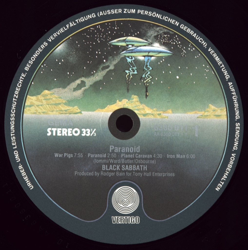 BLACK SABBATH-PARANOID-1970-ОРИГИНАЛЬНЫЙ ПРЕСС 1973 GERMANY-VERTIGO -6360011. Мега редкий малотиражный третий пресс с первыми матрицами в неламинированной матовой обложке . Paranoid — второй студийный альбом британской рок-группы Black Sabbath, записанный в лондонской Regent Sound Studios продюсером Роджером Бэйномruen и вышедший в 1970 году. 10 октября 1970 года альбом поднялся на вершину UK Albums Chart, вытеснив с первого места Bridge Over Troubled Water Саймона и Гарфанкла; в США он достиг 12-го места.