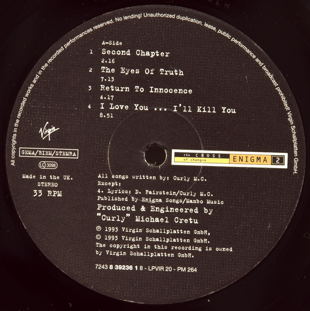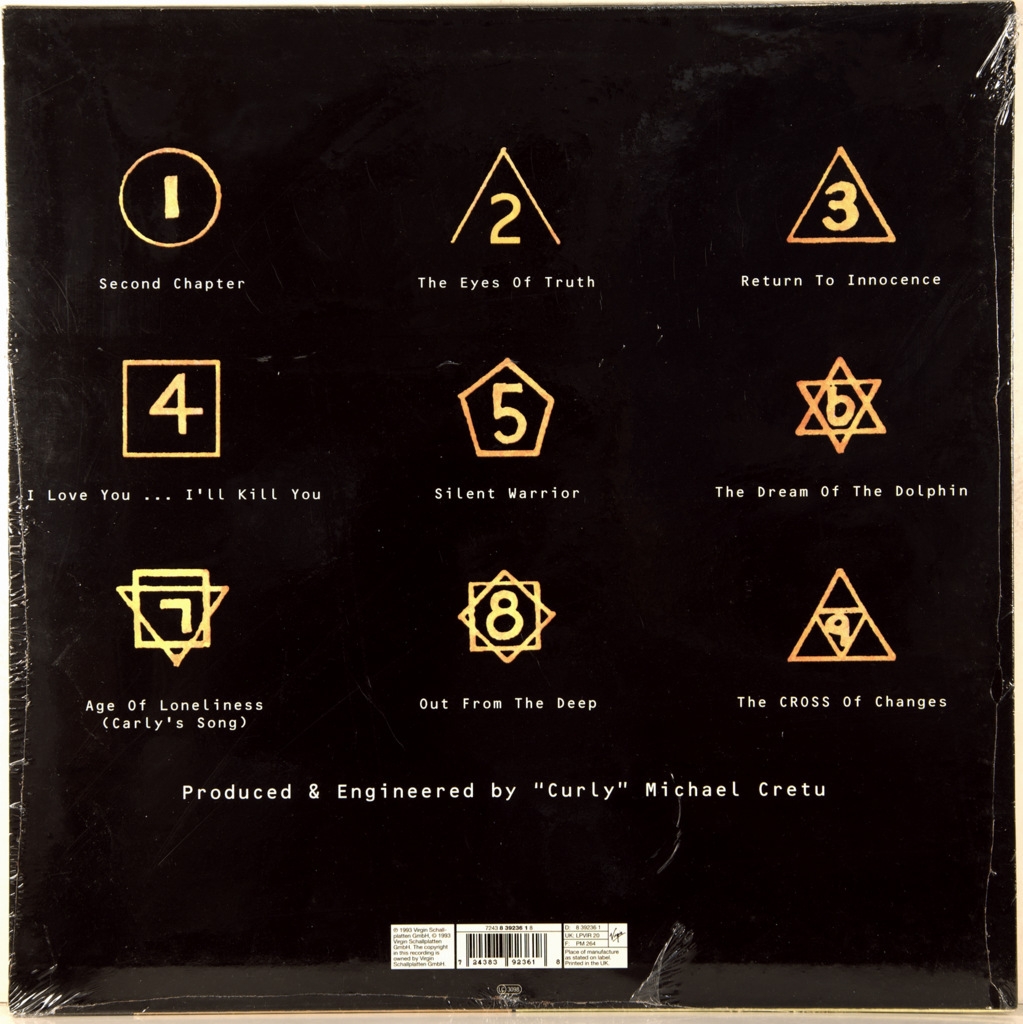 ENIGMA-CROSS OF CHANGES-1993-ПЕРВЫЙ ПРЕСС UK - VIRGIN-LPVIR20. Мега редкий оригинал культового альбома. The Cross of Changes — второй студийный альбом немецкого музыкального проекта Enigma, возглавляемого румынско-немецким музыкантом и продюсером Майклом Крету, выпущенный 6 декабря 1993 года лейблом Virgin Records на международном уровне и лейблом Charisma Records в США. После мирового коммерческого успеха первого альбома Enigma, MCMXC a.D. (1990), Крету начал писать и записывать музыку для нового альбома в A.R.T. Studios, своей домашней студии на Ибице, Испания. Крету использовал сэмплы из песен нескольких исполнителей, в том числе Вангелиса, U2, Genesis и Black Sabbath. The Cross of Changes имел коммерческий успех. После выхода он дебютировал на 1-м месте в британском чарте альбомов, став вторым подряд альбомом Enigma, занявшим первое место в Великобритании, и достиг девятой строчки в Billboard200 в США, где было продано более двух миллионов копий.