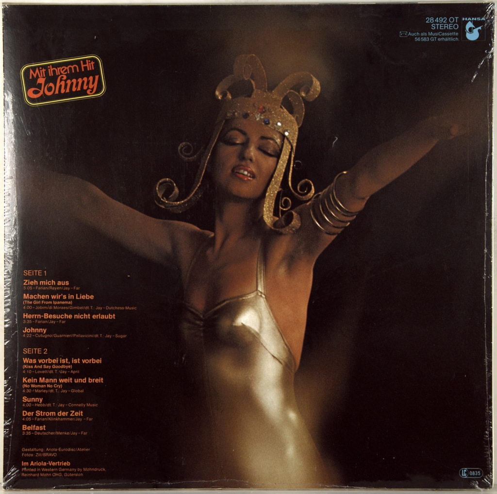 GILLA-ZIEH MICH AUS+POSTER -1977-ПЕРВЫЙ ПРЕСС GERMANY-HANSA-28492OT. Очень редкий оригинал одного из лучших альбомов в стиле диско. Второй альбом Gilla - Zieh mich aus вышел в 1977 году. В конце 1976 года к выходу был готов второй альбом певицы Gilla - Zieh mich aus. В него вошла написанная Тото Кутуньо композиция Johnny — пожалуй, самый известный на сегодняшний день в России и странах бывшего СССР хит Джиллы, а также различные немецко-язычные версии известных хитов: бразильской босса-новы The Girl From Ipanema (нем. Machen wir's in liebe), Kiss And Say Goodbye (нем. Was vorbei ist, ist vorbei). Теперь продюсер уже представляет немецкие варианты песен Boney M. в исполнении Джиллы. Это Sunny и Kein mann weit und breit англ. No Woman No Cry, кавер известнейшей композиции Боба Марли, и Belfast.
