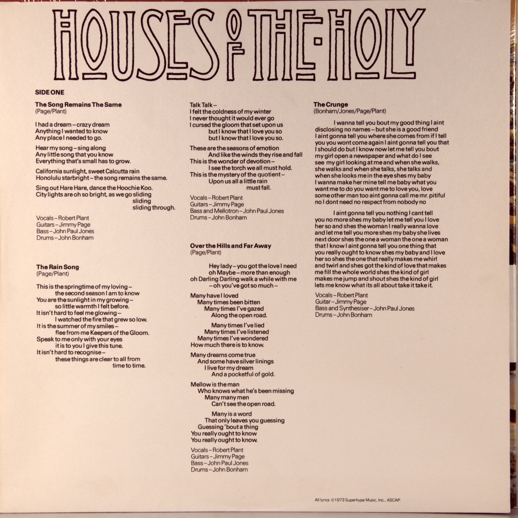 LED ZEPPELIN-HOUSES OF THE HOLY-1973-ПЕРВЫЙ ПРЕСС USA ( CUT RL)-ATLANTIC-SD7255 матрицы ST-A-732783-C AT STERLING RL / ST-A-732784-F AT STERLING RL .Richmond Press. Мега редкий американский оригинал. Мастеринг делал Robert Ludwig (метка RL) 1-й выпуск в США (с адресом Бродвея 1841 года на этикетках), с "горячим" мастерингом Роберта Людвига на обеих сторонах. Первые копии попав в продажу начали отзываться на производство, потому что высокие басы приводили к неправильной работе картриджей (головок) низкого качества, что заставляло людей возвращать альбом, полагая, что он неисправен. Затем был нанят другой звукорежиссер, чтобы переделать гораздо менее "горячую" версию альбома, и это распространенная версия..Houses of the Holy — пятый студийный альбом британской рок-группы Led Zeppelin, выпущенный 28 марта 1973 года на лейбле Atlantic Records. Пейдж описывал идею обложки как «символ невинности, выражение идеи о том, что все мы существа, которые стремятся к небесам обетованным». Позировали шестилетняя Саманта Гейтс и её четырёхлетний брат Стефан. Фотография на обложке представляет собой коллаж из более чем тридцати снимков. Обложка альбома не содержала никакой информации об исполнителях или названии. В США заголовок был написан на ленточках, которыми были заклеены детские ягодицы. Несмотря на эту предосторожность, пластинка оказалась запрещена во многих штатах «Библейского пояса». «Сегодня ничего подобного нам бы сделать не позволили, тут же обвинили бы в пропаганде педофилии, — говорит Пауэлл. — Но мы были хиппи, разгуливать голышом было для нас делом совершенно обыденным». В 2011 году обложка альбома заняла 28-е место в списке лучших обложек альбомов всех времен по версии интернет издания Music Radar. В музыкальном рейтинге альбом сразу занял с 1 по 10 места в чартах стран всех континентов, став сразу мильтиплатиновым.