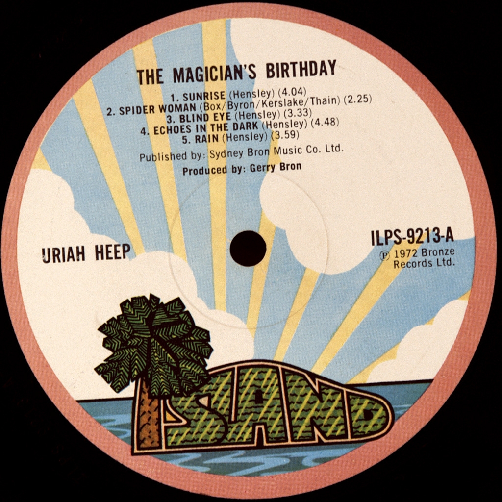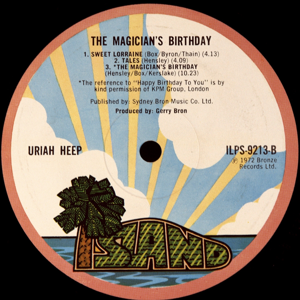 URIAH HEEP-MAGICIAN'S BIRTHDAY-1972-ПЕРВЫЙ ПРЕСС UK (ЭКСПОРТ) -ISLAND-ILPS-9213. Матрицы A1U/B1U. Стампера 1P/1P (Мечта!) Мега редкий оригинал контрактного пресса для экспорта в уникальном состоянии. The Magician’s Birthday— пятый студийный альбом британской рок-группы Uriah Heep, записанный группой с продюсером Джерри Броном и выпущенный лейблом Bronze Records в ноябре 1972 года.Обложку оригинального винилового релиза оформил дизайнер Роджер Дин. В США синглами вышли «Blind Eye» (#97) и «Sweet Lorraine» (#91). «Spider Woman» поднялась в Германии до 13-го места.Альбом вошёл в хит-парады Норвегии (#5), Австралии (#10), Великобритании (#28), США (#31) и Финляндии (#1, две недели). 22 января 1973 года альбом получил в США «золотой» статус.