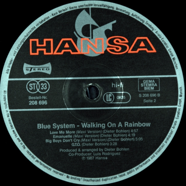Первая сольная работа Болена в BLUE SYSTEM-WALKING ON A RAINBOW-1987-Первый пресс GERMANY HANSA номер 208 696